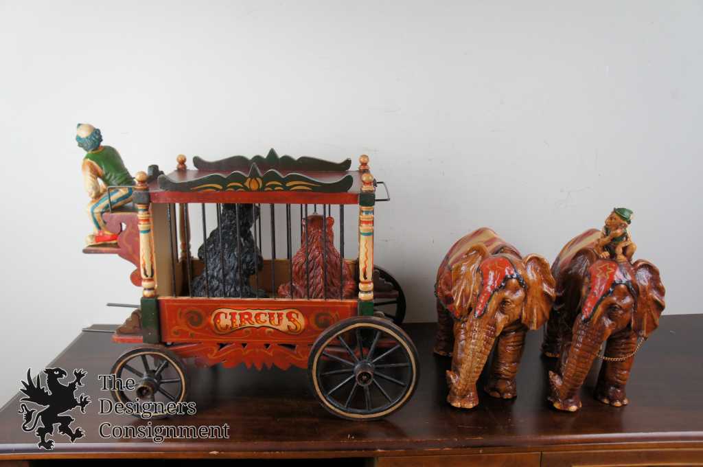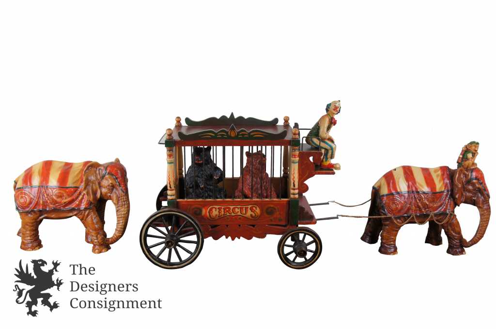 1920s Vintage Barnum & Bailey Toy Circus Wagon Set Clown Monkey Bears Elephants