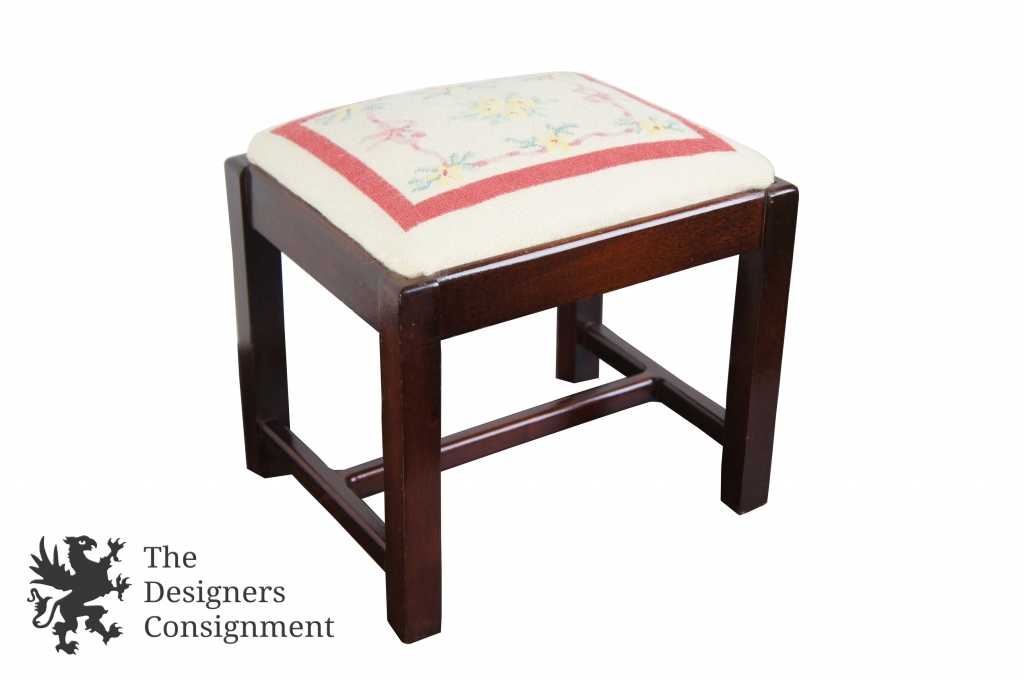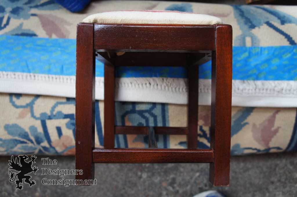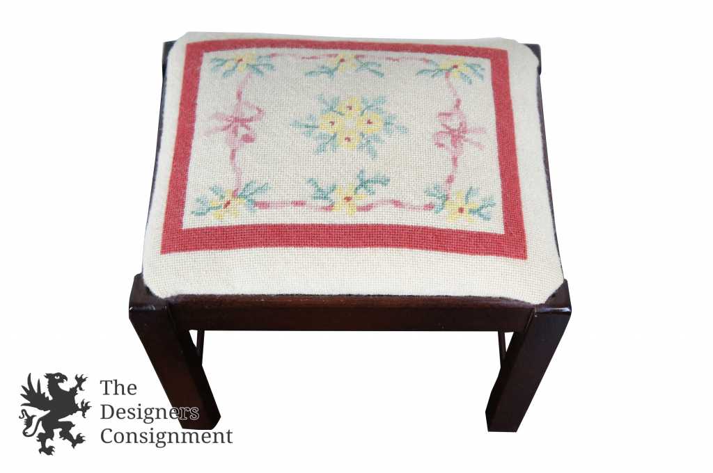 Chippendale style Mahogany Foot Stool with floral embroidered seat.