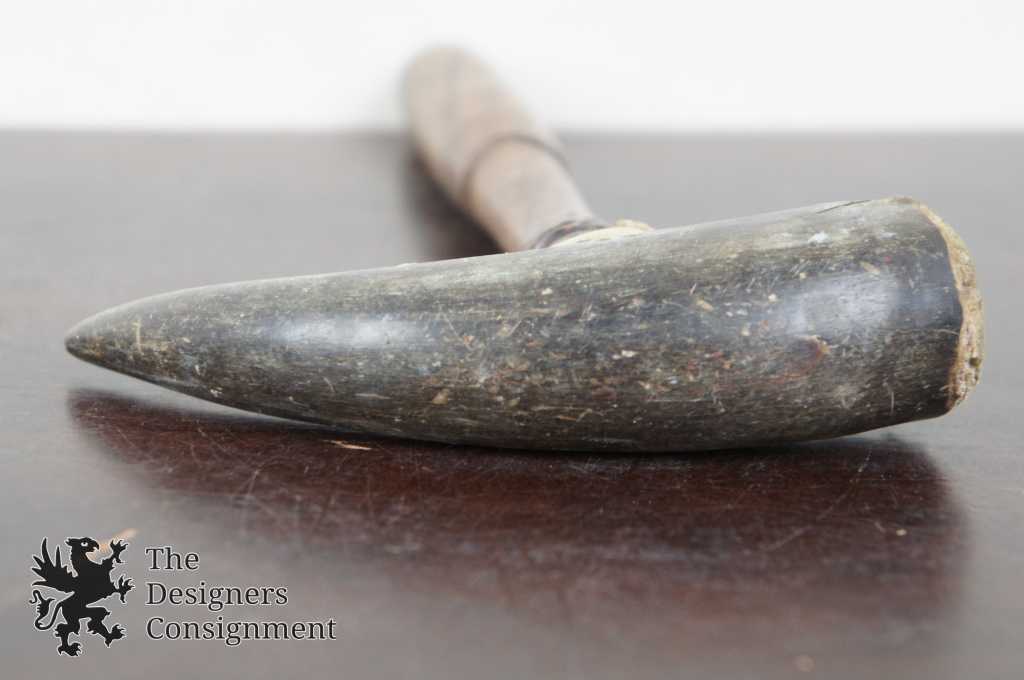 Features a primitive antler (attributed to a buffalo) on a wood shaft