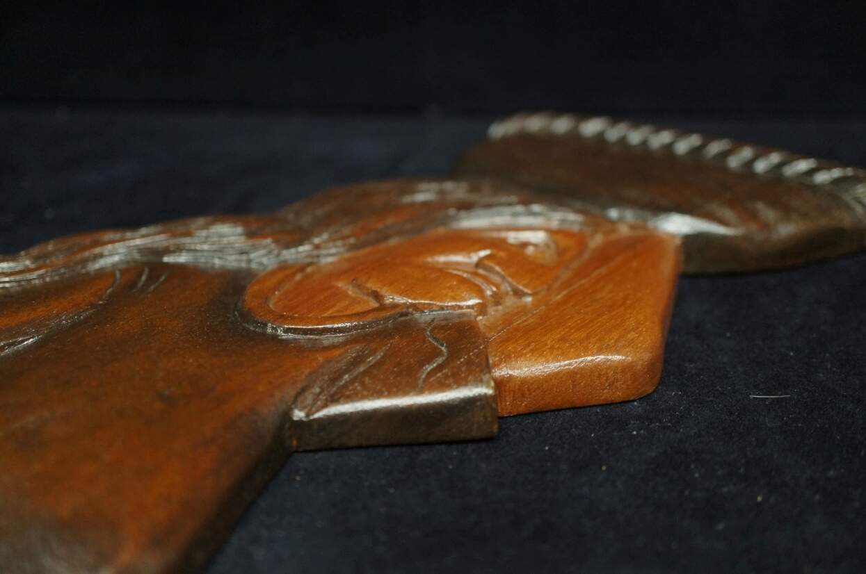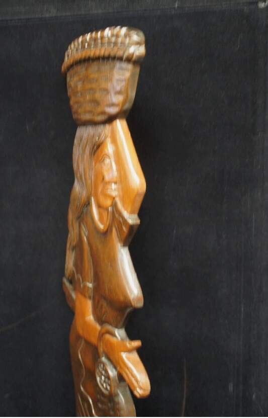 Folk Art Wall Plaque - A unique carving featuring a native woman with a basket on her head