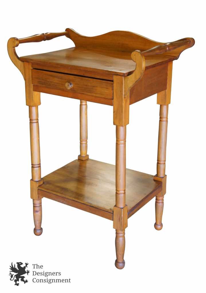 Exceptional early american style washstand. Made from pine with serpentine bashsplash, spindled towel bars and drawer. Circa late 19th century.