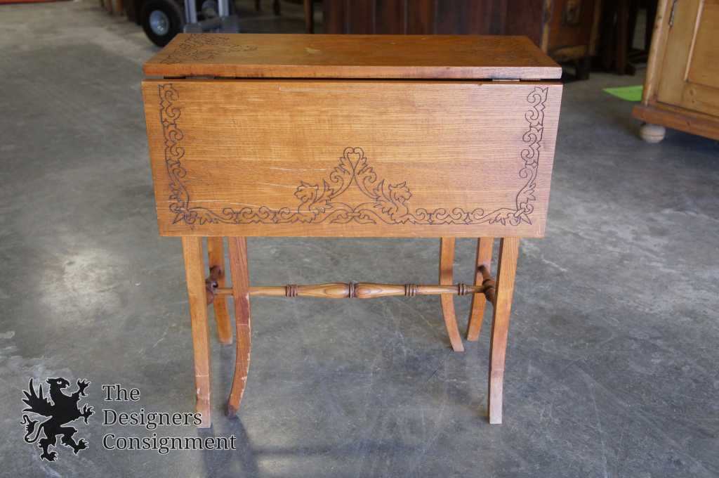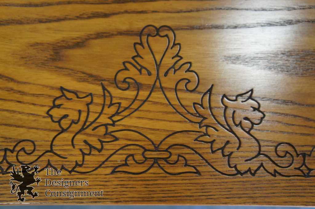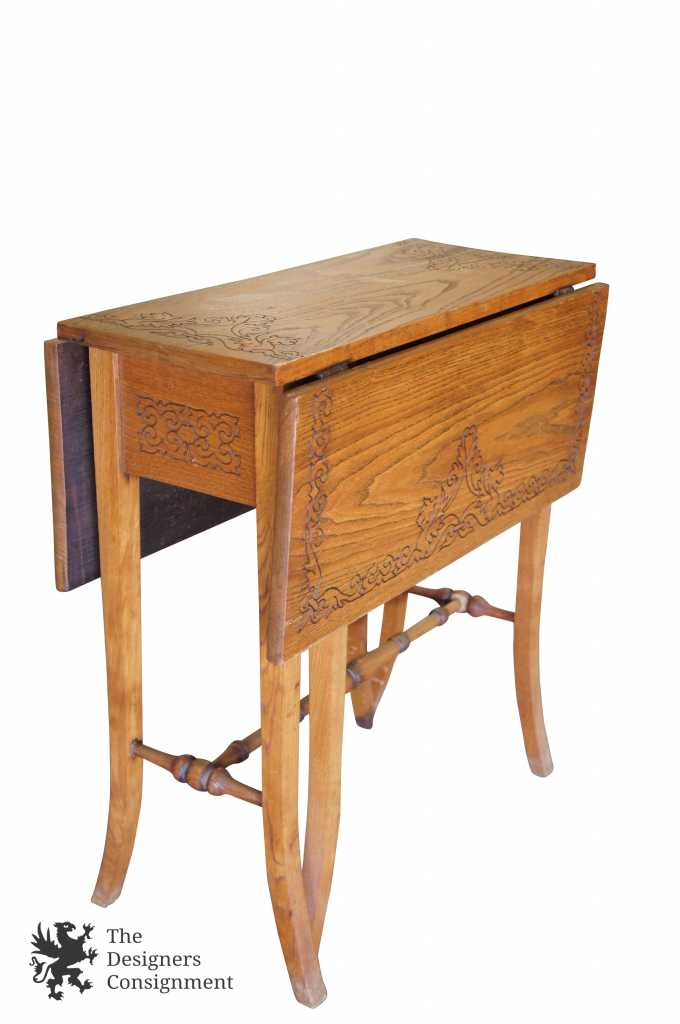 20th Century English oak gate-leg table. Exceptionally designed with a floral engraved top showing lion heads.