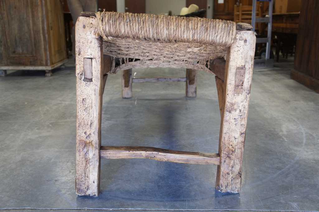 The Charpoy is a traditional woven bed that has been used in India since the middle ages. This beautiful example was made in late the 19th century with solid distressed posts. It features an arched head support and is neatly woven with Jute fiber. Perfect for use as chaise or day bed.