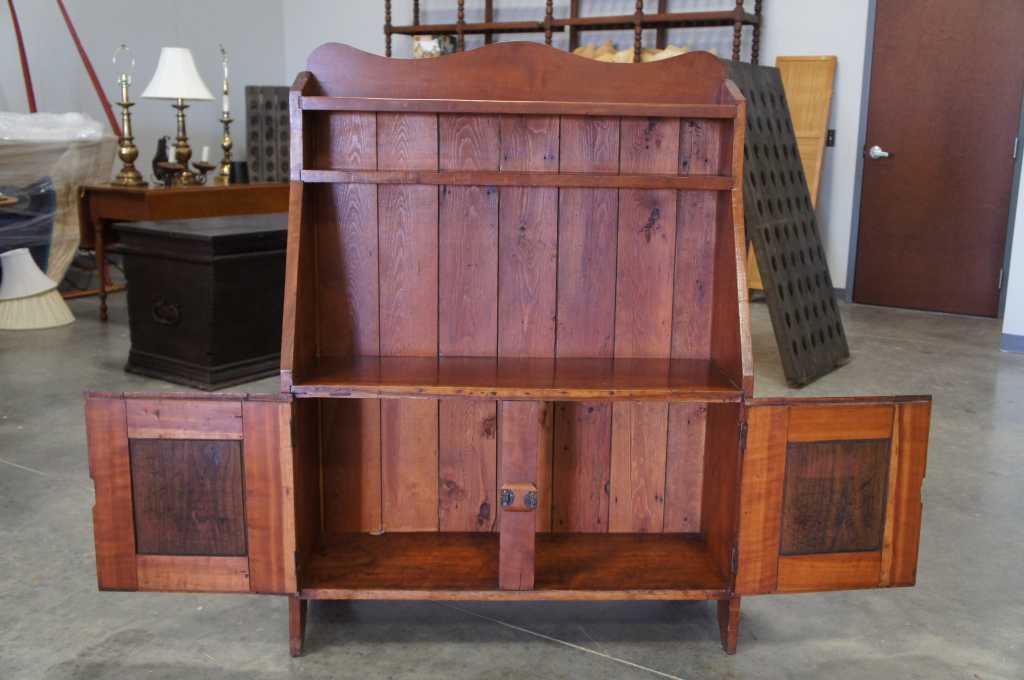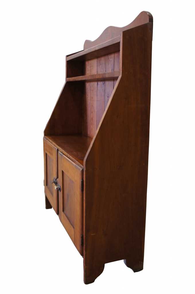 C.1880s Early American step-back cupboard. Made from solid maple with a slant top featuring an upper cubby over lower cabinet.