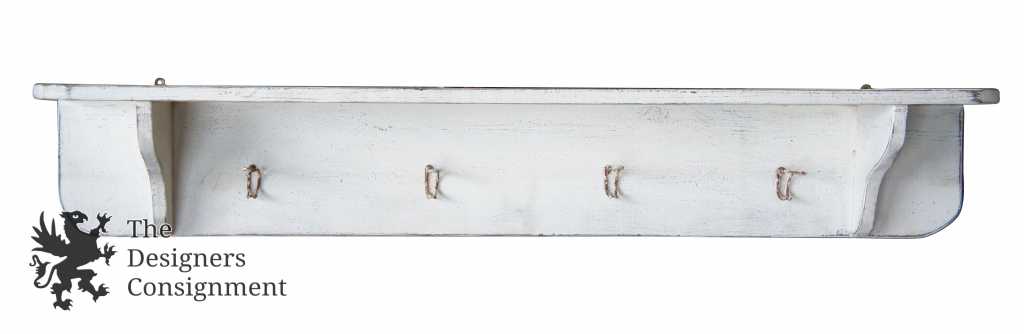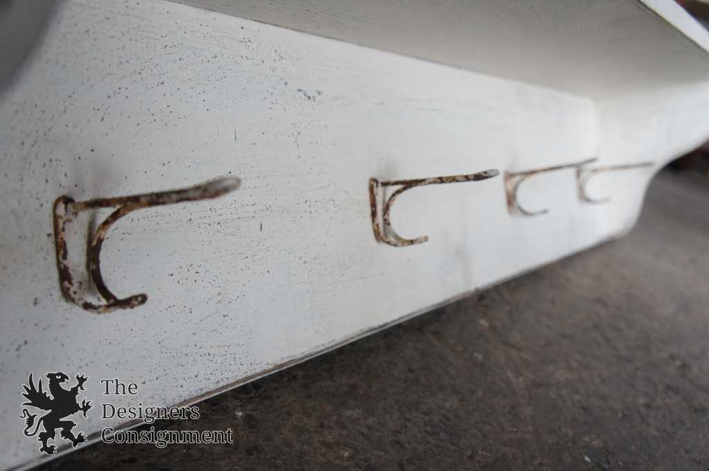 This beautiful coat rack is the perfect piece for any home. Country style with an antique white finish and 4 metal hooks. s addition to any setting.