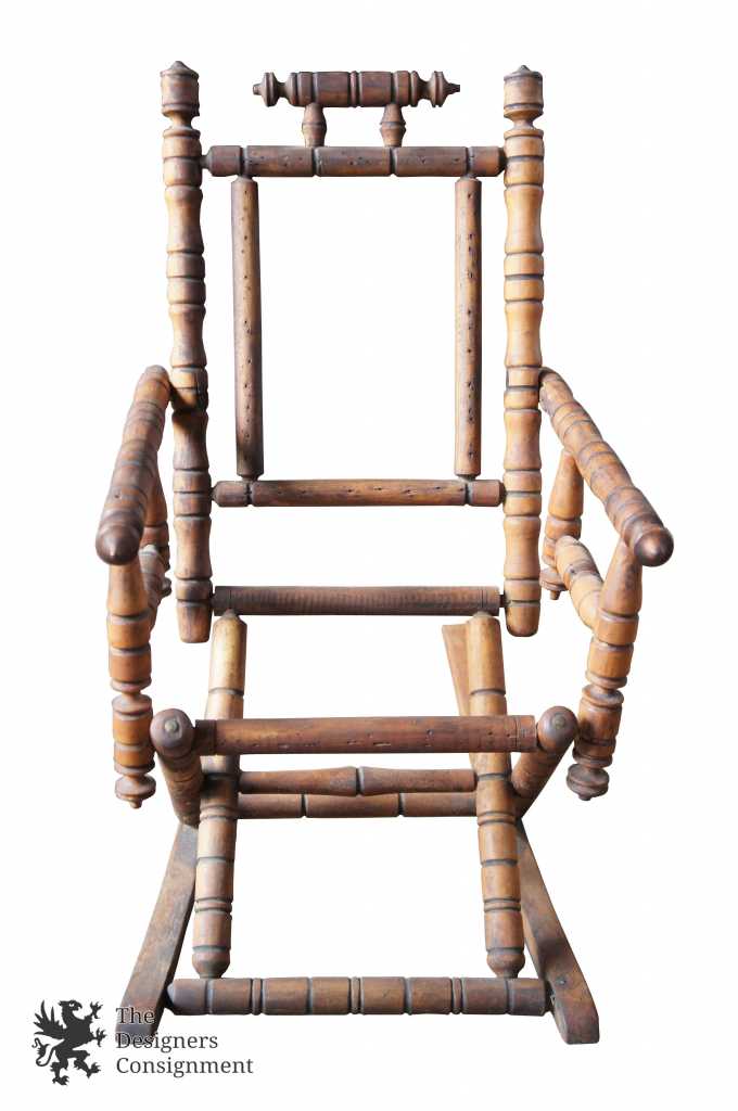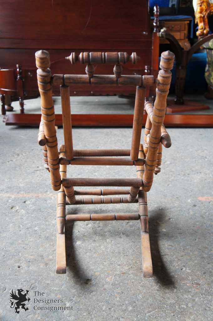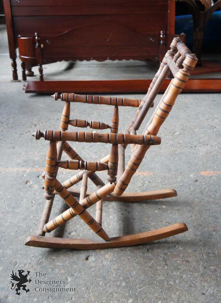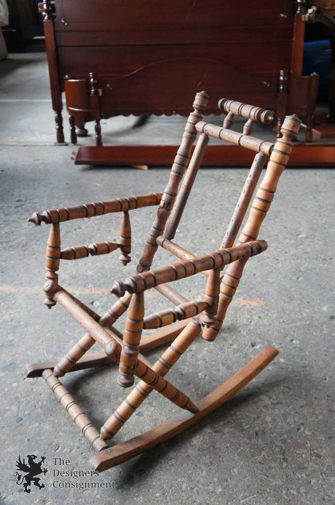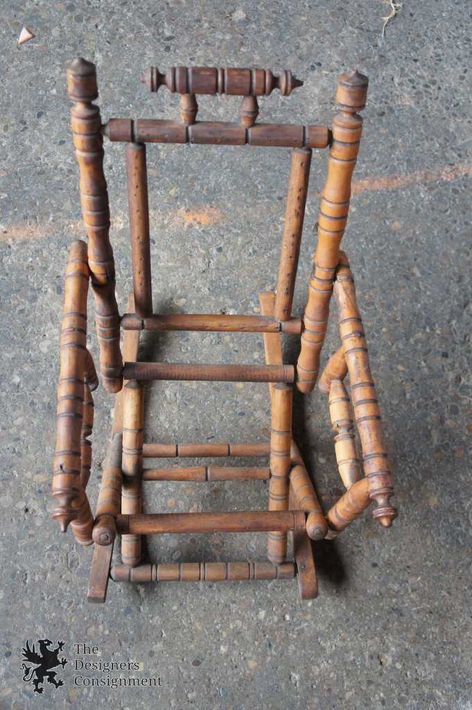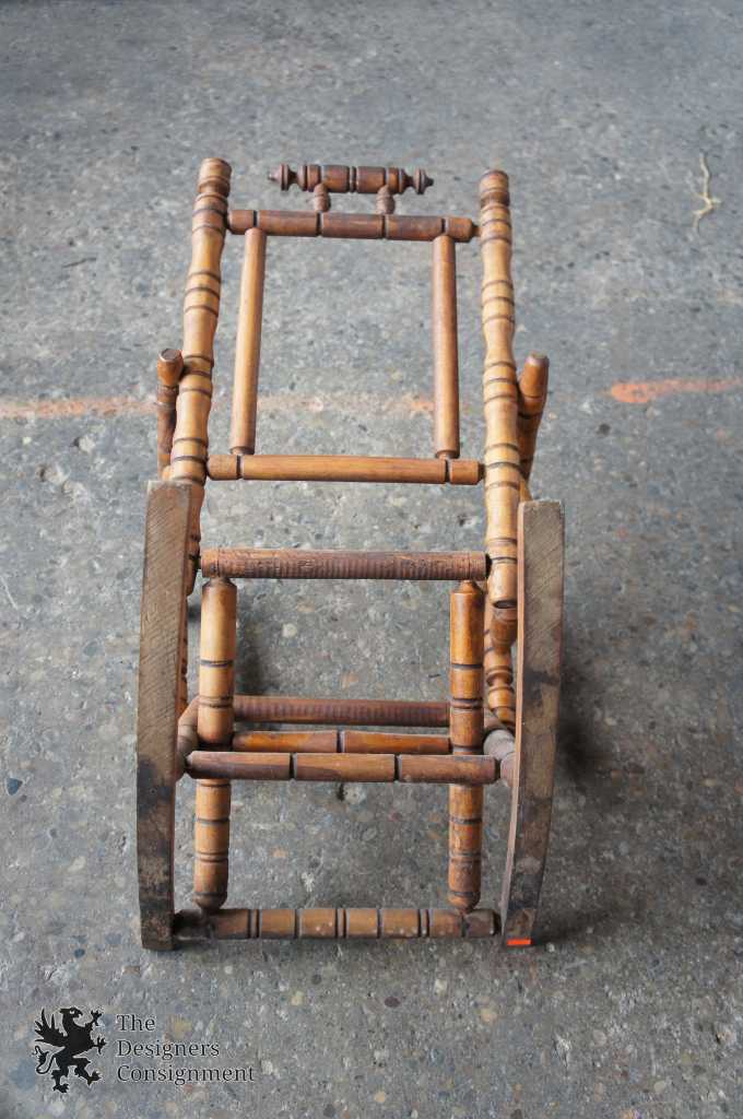 Victorian miniature doll or child sized rocker. Made from solid wood with a spindled frame. Ready for a seat and back.