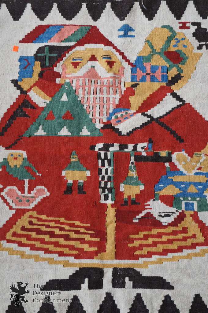 4' x 3' Santa Claus Kilim Rug. Hand Woven with vibrant detail.