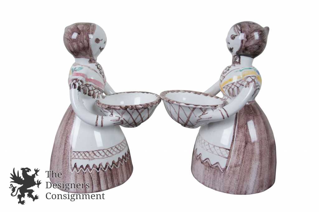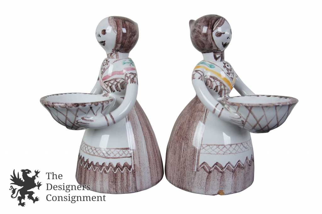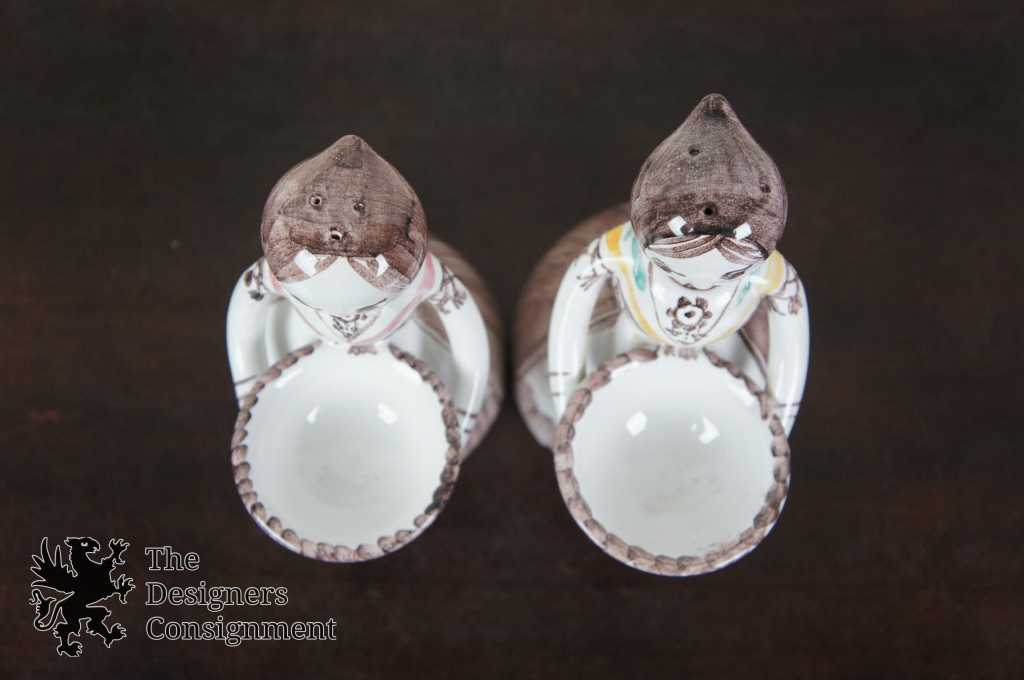 Pair of hand painted, figural porcelain, combination salt & pepper shakers & condiment bottles by Lars Syberg Denmark.