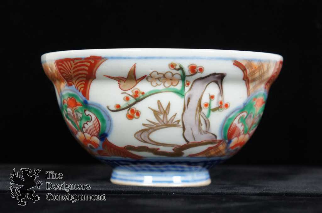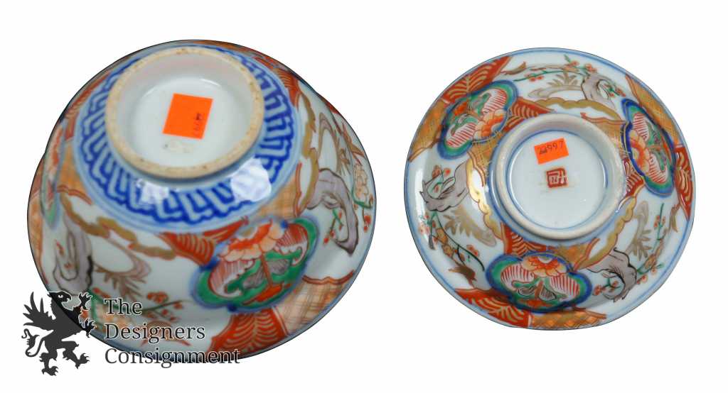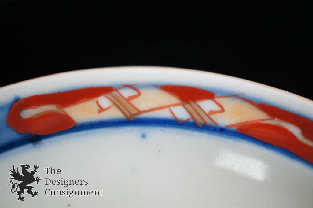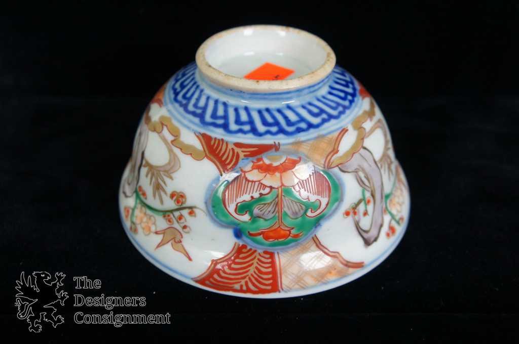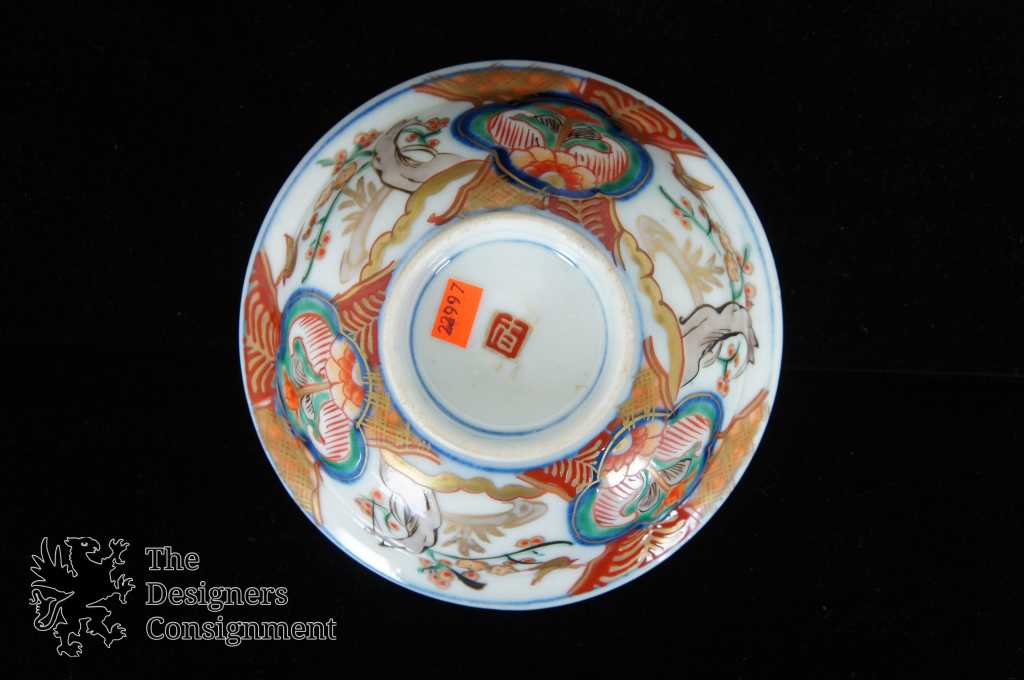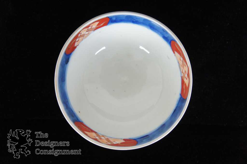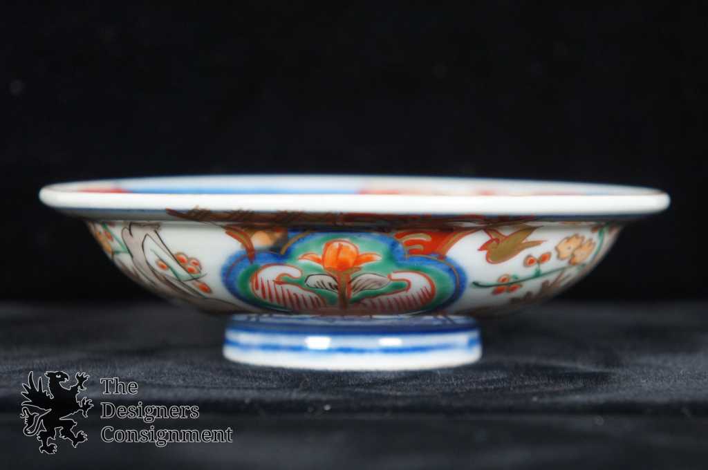 Japanese Imari Matching Bowl & Plate. Blue with floral pattern along the exterior. Interior is blue and red. Plate has a stamp along the underside.