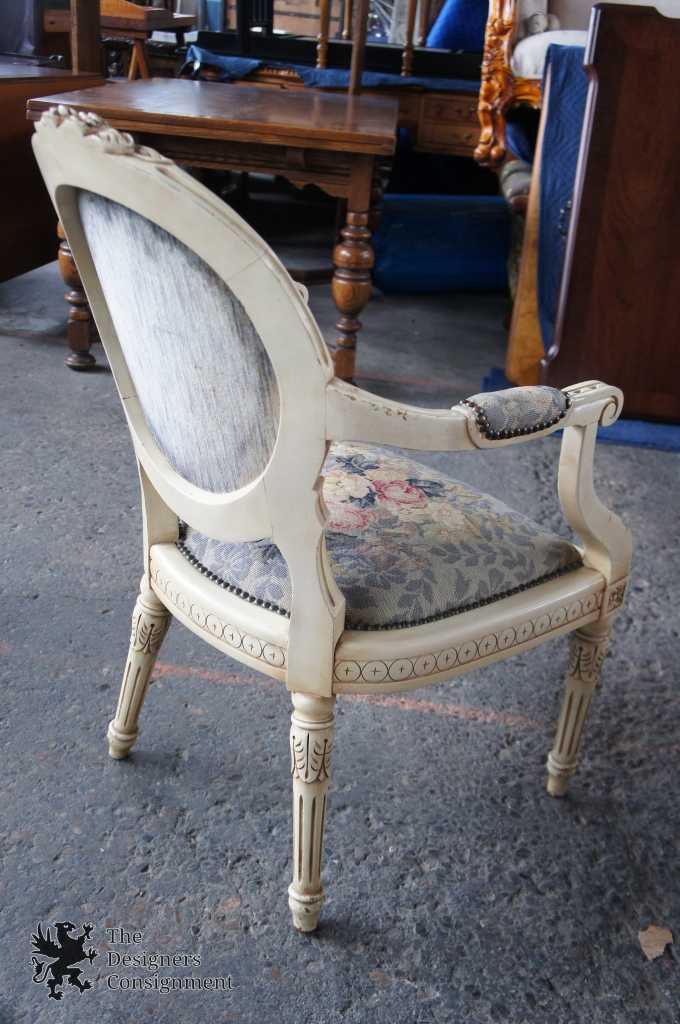 Turn of the century Louis XVI style provincial balloon back chair with acanthus carved flourishes. Features a colorful needlepoint upholstery. The perfect compliment to any room. This chair come to us from the Estate of Virginia Kettering whom with her husband took over the home of Charles Kettering when he passed. Charles built the home on Ridgeleigh terrace in 1914. The first home in the United States to have electric air conditioning. When Eugene passed, Virginia remained in the home redecorating and restoring it back to glory. When Virginia passed in 2003 the furniture was put into storage by her children.