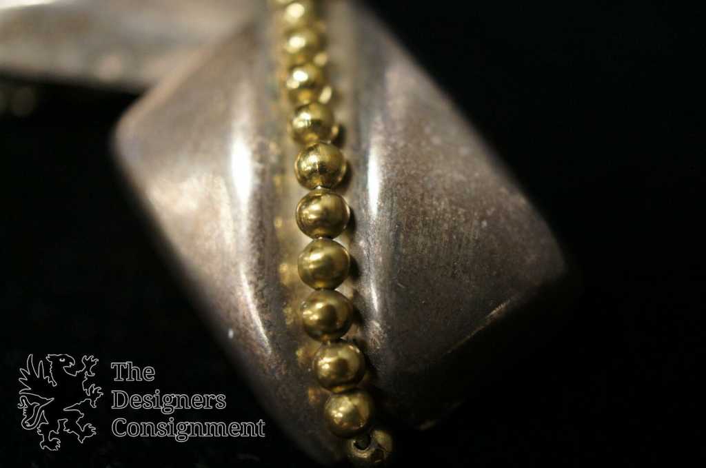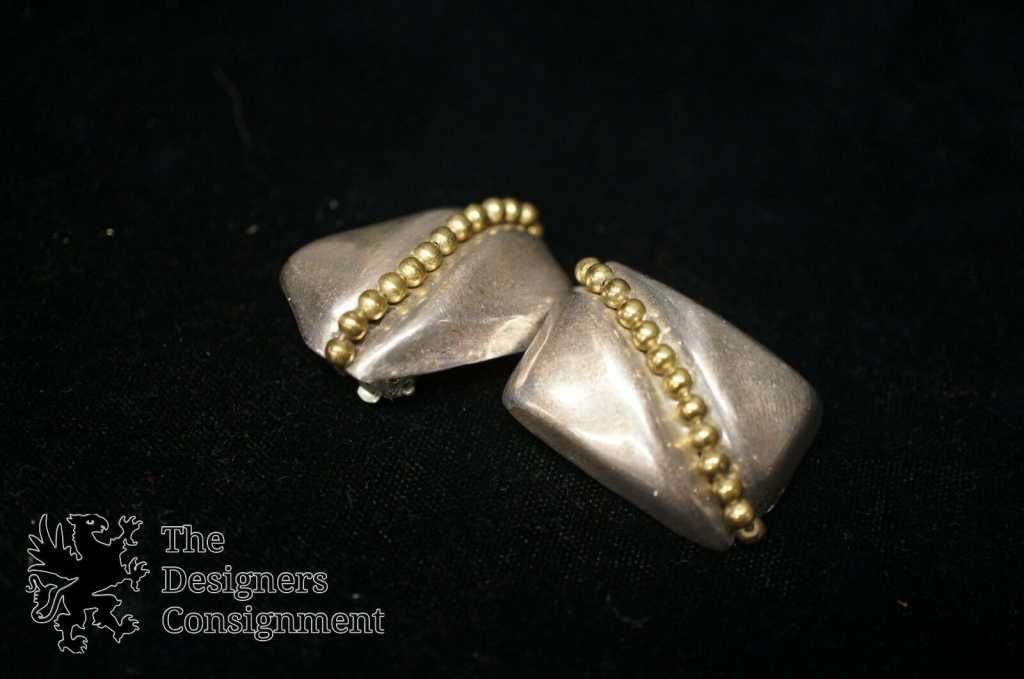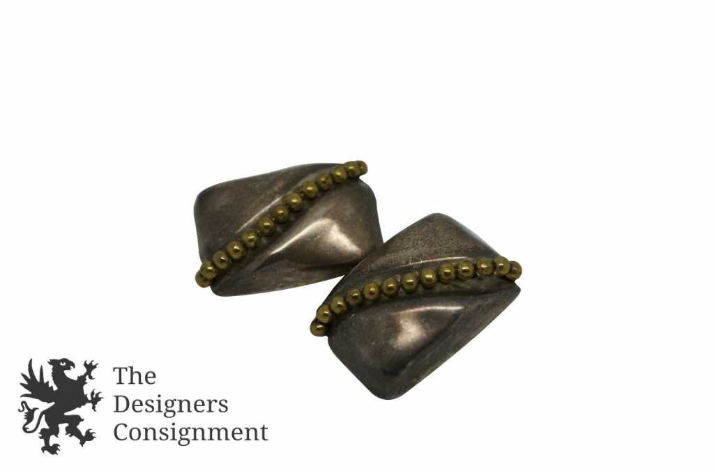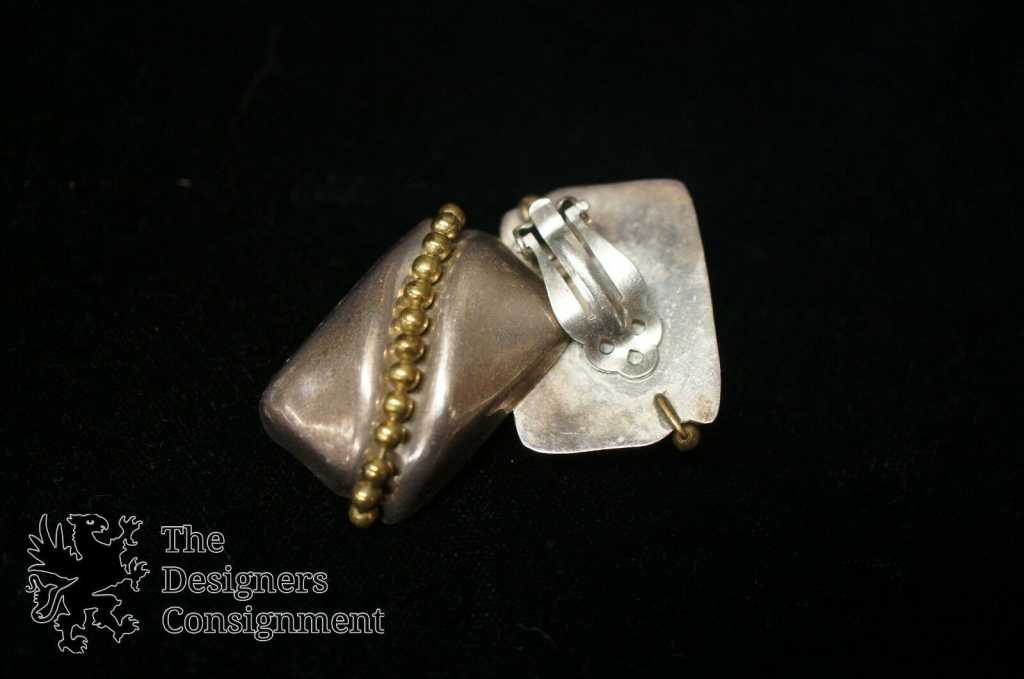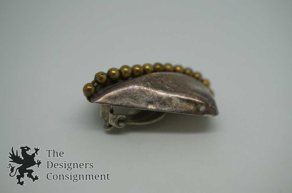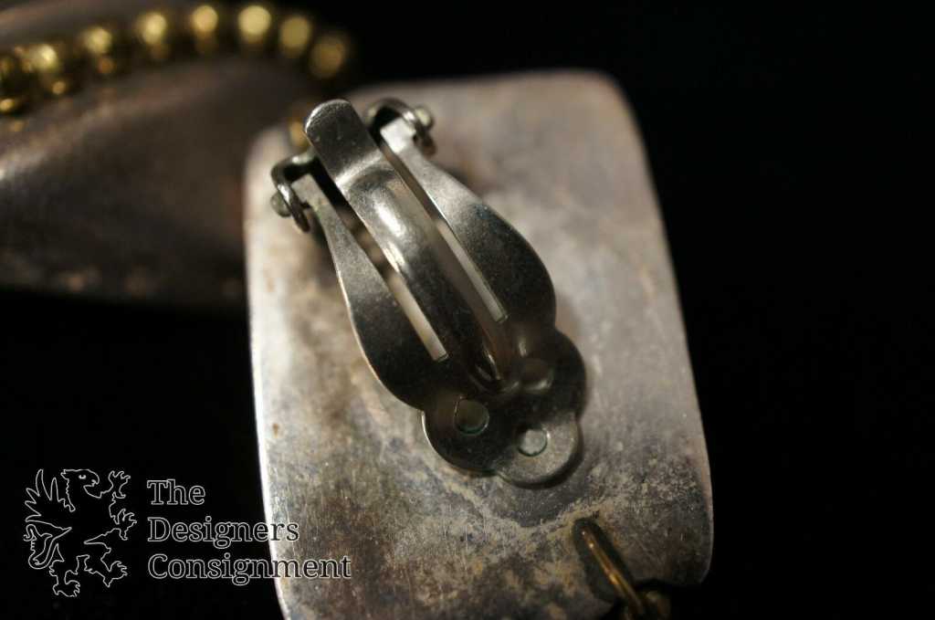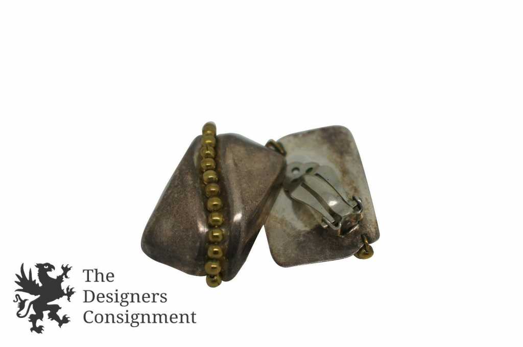 Vintage Mexican Silver Clip On Earrings Rectangular with Brass Bead Chain