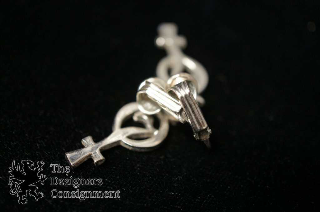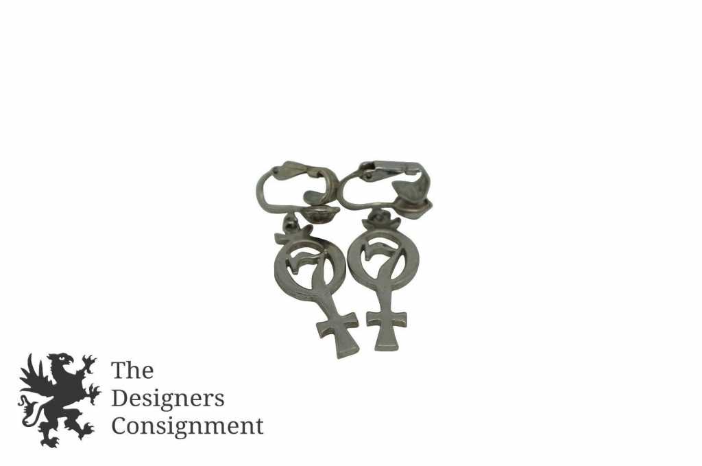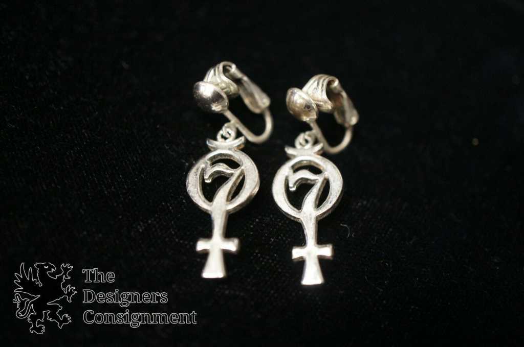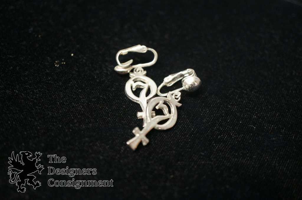 Sterling Silver Clip On Earrings Dangle Mercury Astrological Sign with #7