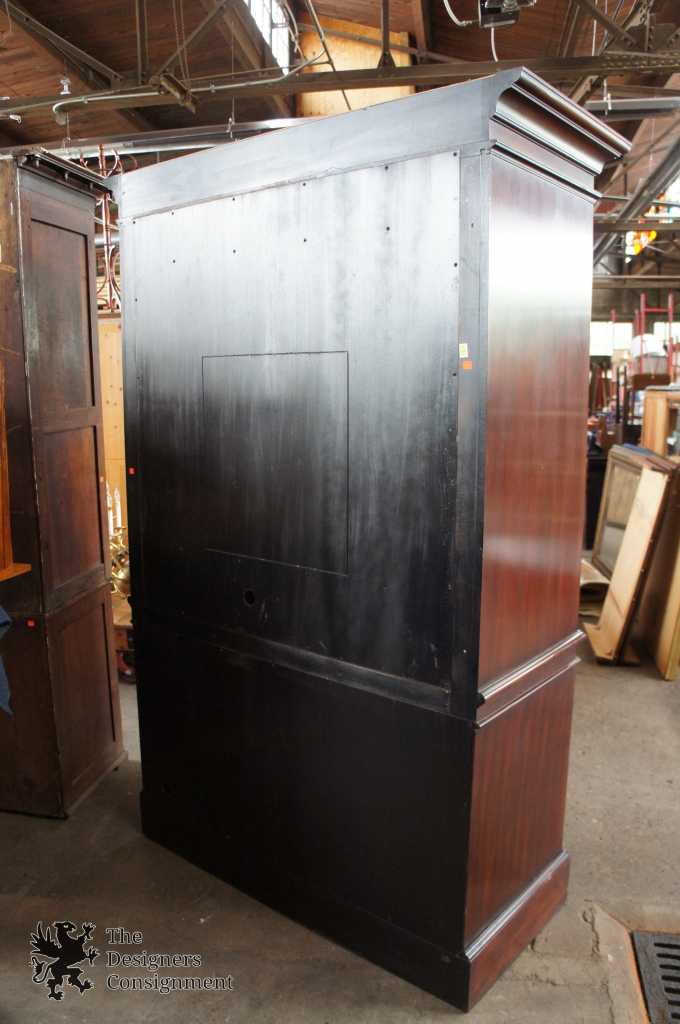 Baker Milling Road Media Cabinet. George III inspired with crotch mahogany front doors giving a stately appearance. The interior offers plenty of room for storage. Doors recess for a relaxed view. Lower portion has two dove-tailed drawers in addition to shelves. Naturally distressed.