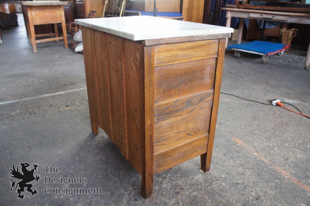 Early 20th Century Marble Top Cabinet. Made from walnut with brass hardware.