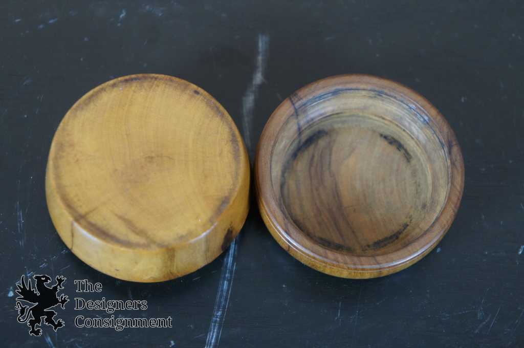 Antique Treenware Inkwell. Made from burl wood with glass insert and wooden screw top. The canister could be altered to be used as a snuff container as well.