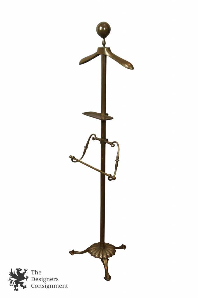 Vintage Brass Clothing Valet Butlers Rack Dressing Stand Coat Hat Suit Hanger