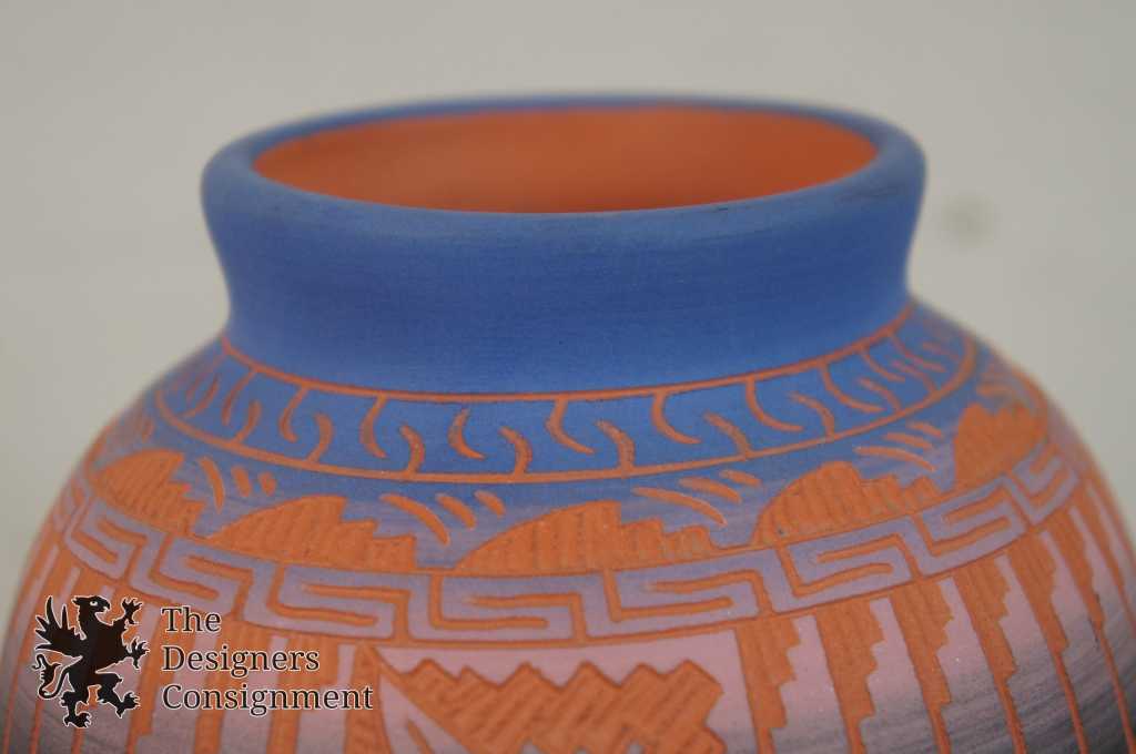 A striking southwestern vase by Peny Hubbard. Beautifully detailed with a geometric pattern.