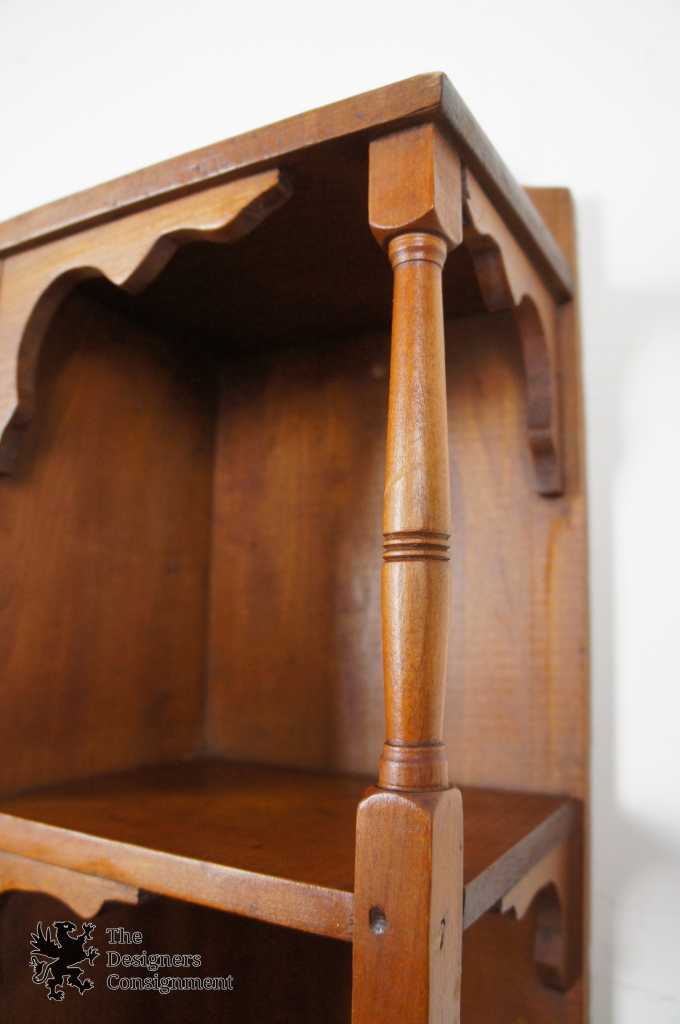 Early American Style Wall Cabinet. Made from pine with open shelves along the right and closed cabinet to the left. Serpentine apron along the top and bottom. A neat addition to any room.