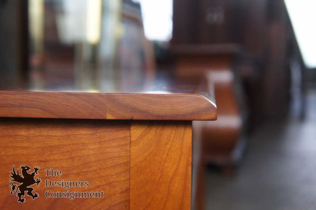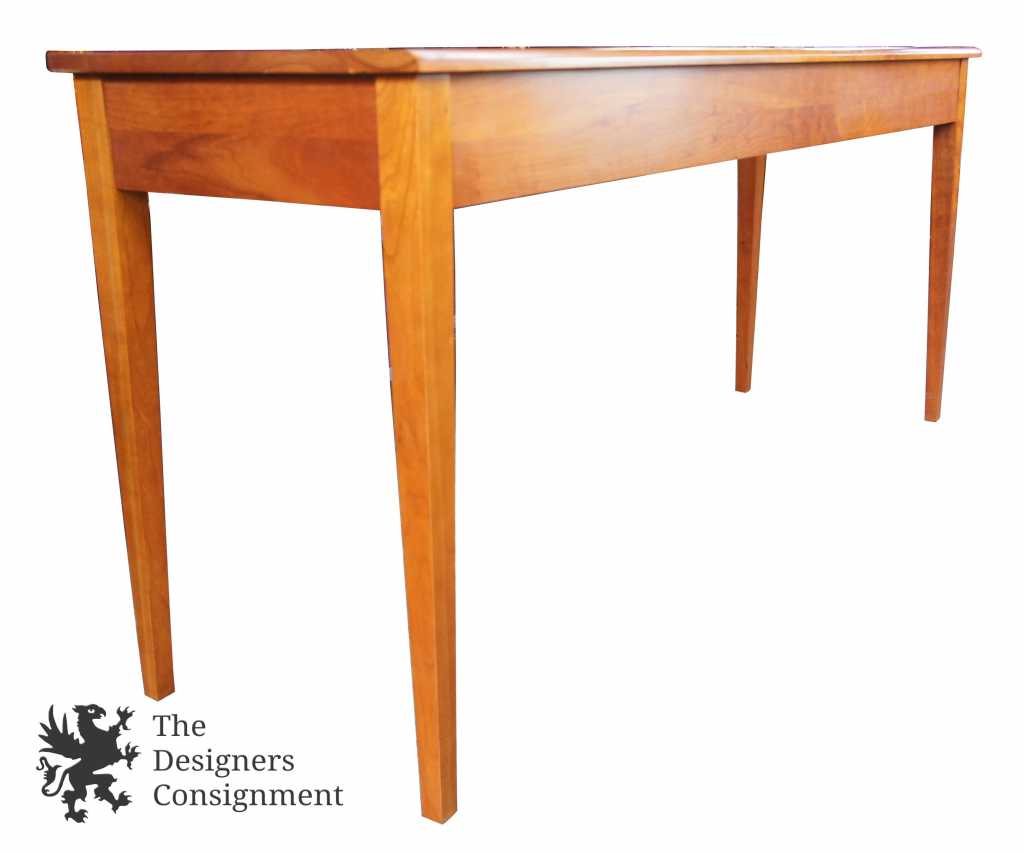 Harden Furniture burnished oil console table. Made from solid cherry, circa 1999. This gorgeous piece is shaker inspired with a beveled front edge and tapered legs. Perfect for any hallway or entry space.