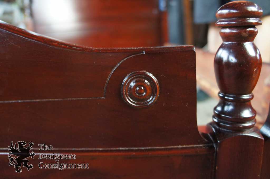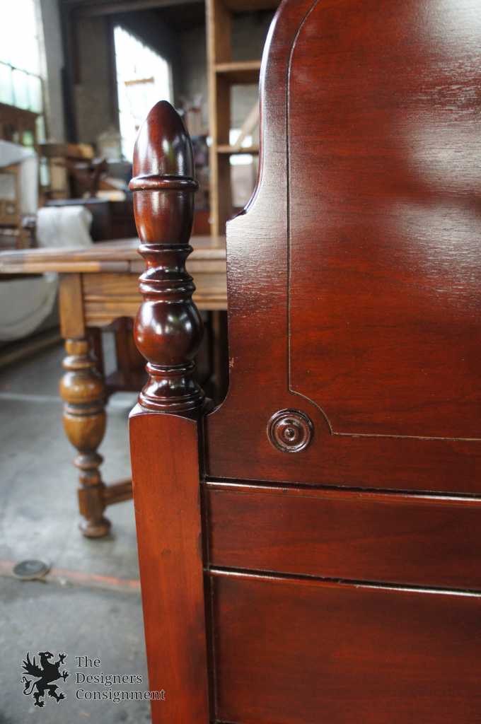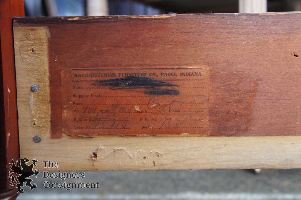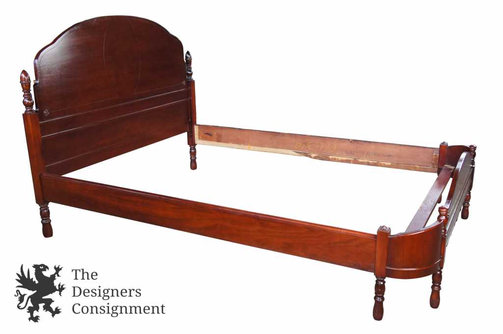 Knox-Hutchins Furniture Co. Walnut Bed, circa 1930s. Knox-Hutchins operated out of Paoli, Indiana. This beautiful bed is early american inspired with spindled posts and a wrap-around front. Matching Dresser & Vanity available separately.