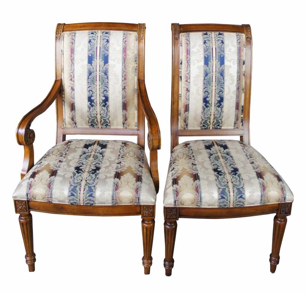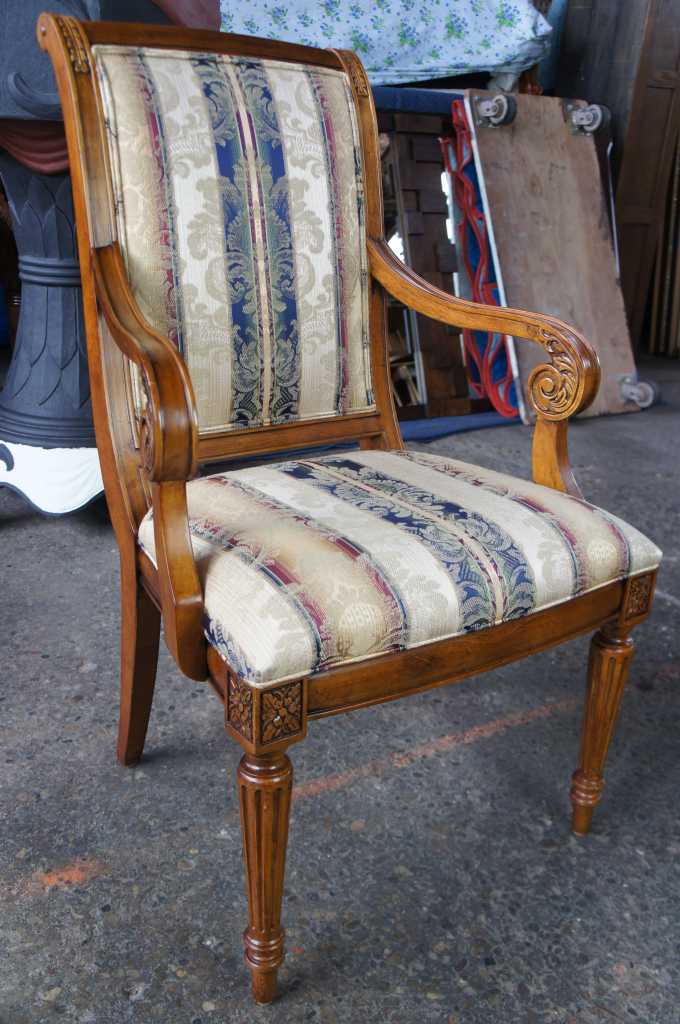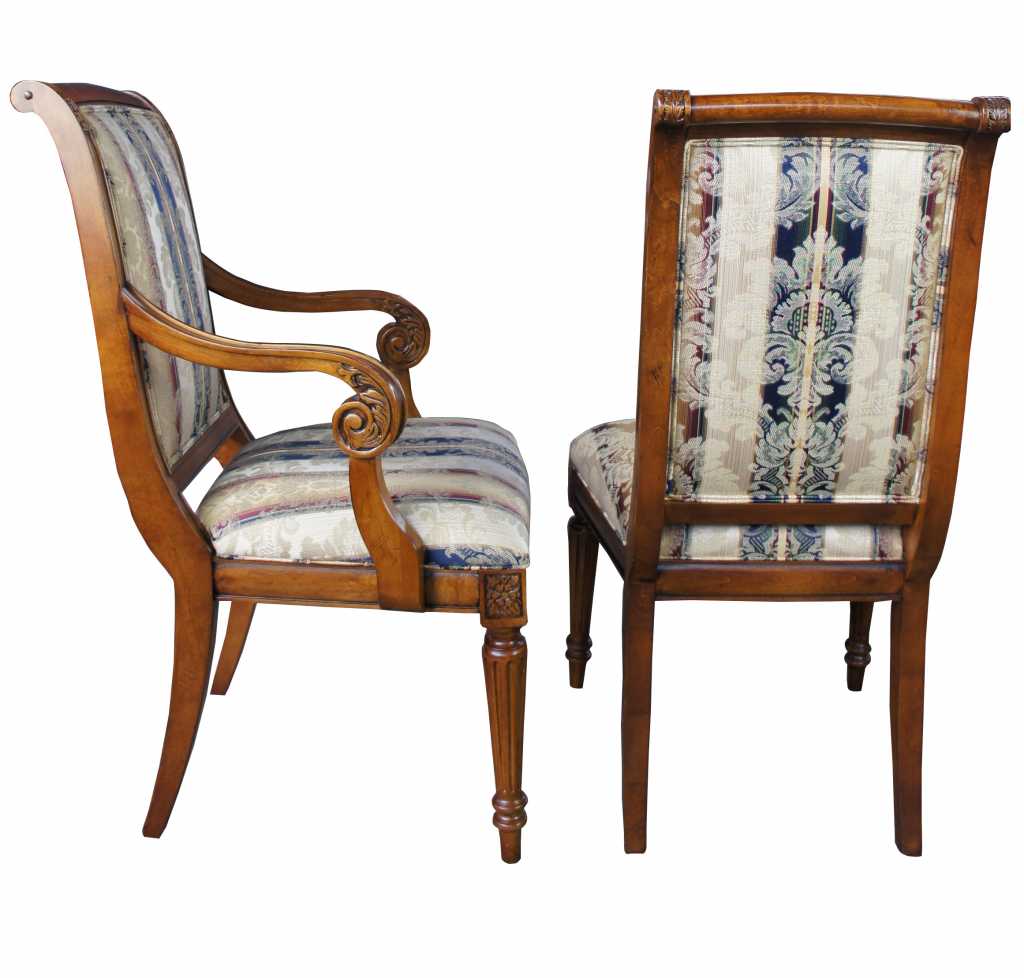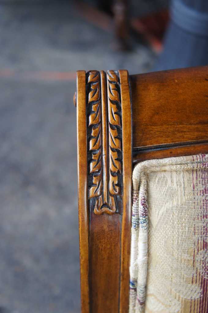 The perfect addition to a gracious social scene. The French Neoclassical-inspired details -- carved scroll arm, carved rosettes, and fluted legs -- say elegance. The upholstered back and seat say comfort. Available in hundreds of fabrics.