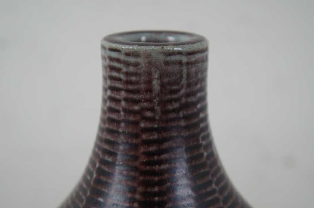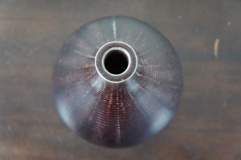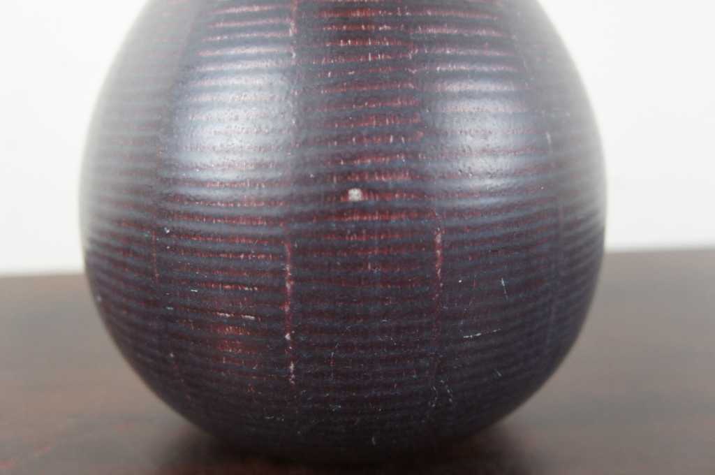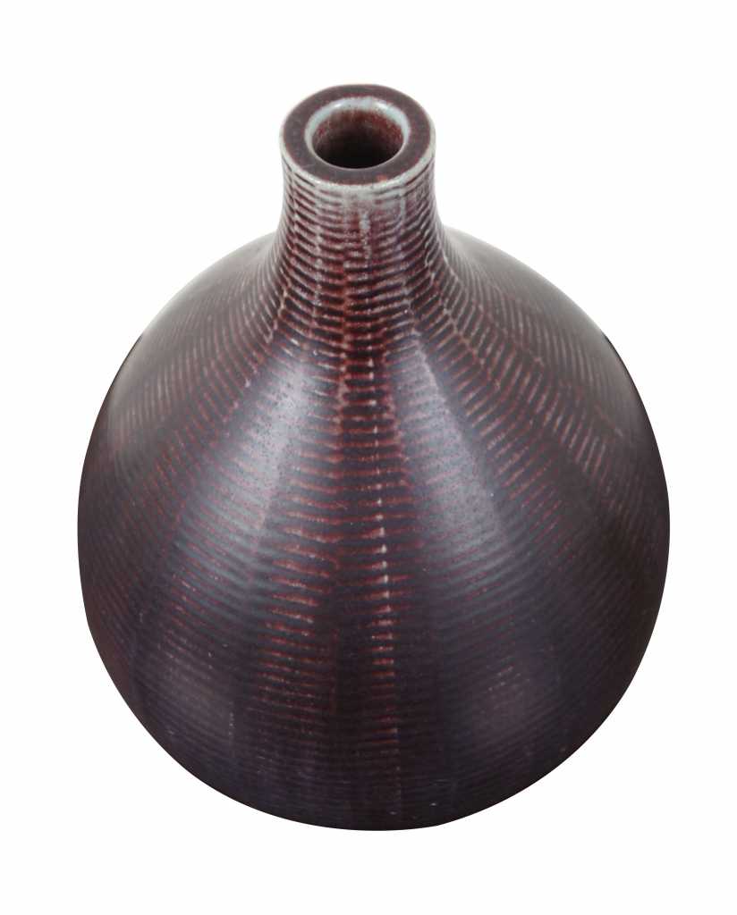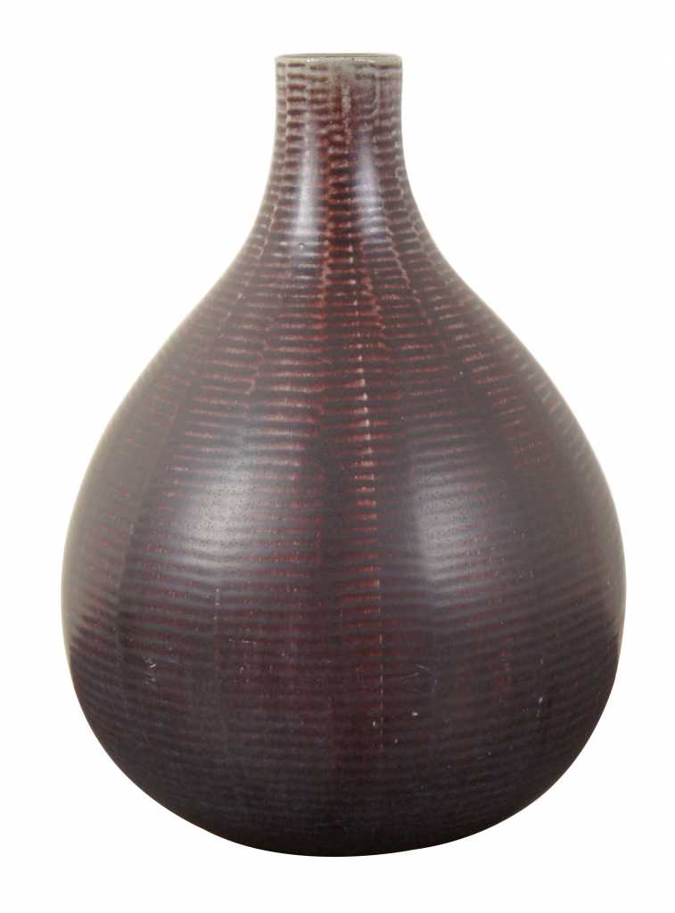 Stoneware ribbed vase with oxblood glaze, 1950s.