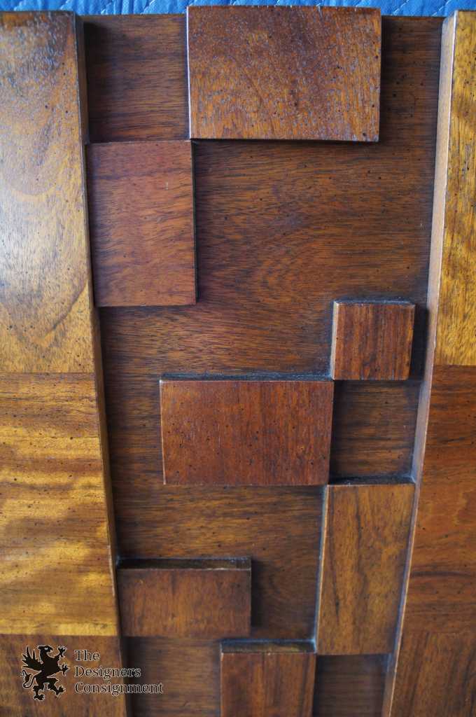 A stunning Paul Evans inspired Headboard by Lane Furniture. Made from Walnut with classic block front in Brutalist manner. Manufactured on June 11, 1973 in plant number 3. Additional pieces available.