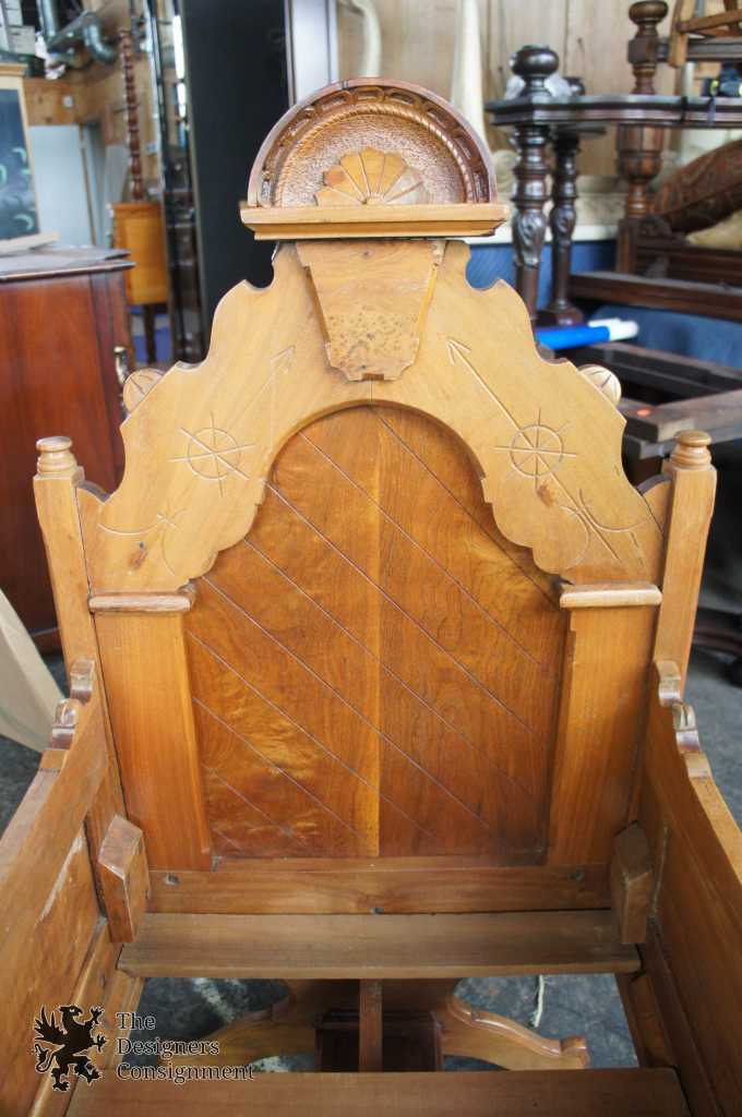 A gorgeous Victorian era cradle,circa 1880s. Made from carved walnut with a knockdown design allowing it to be moved and assembled easily. Along the left side is a foot rocker. Beautifully detailed showcasing amazing craftsmanship.