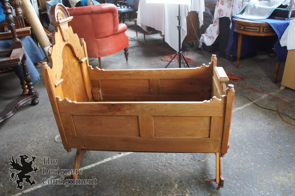 Originally belonged to William and Anna Keyes who owned the Victory Theater that is now known as the Victoria Theater. William Keyes helped one of his employees bring their family into the US, and he was rewarded with this handcrafted cradle. It was kept in the family and used for 3 generations until now.