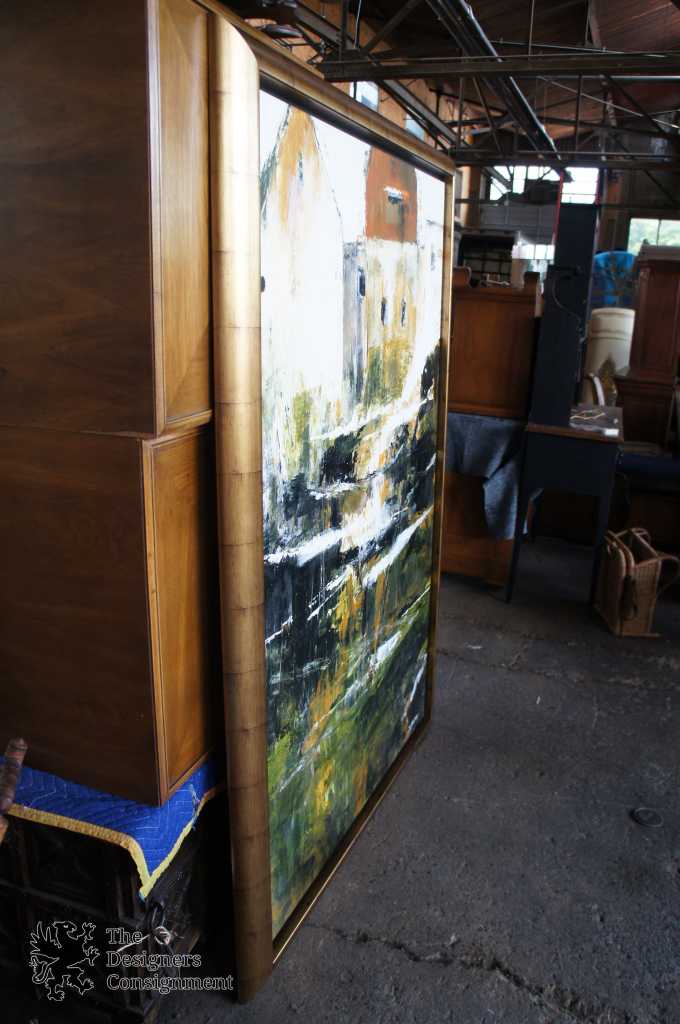 Paul is an active abstract painter from Paris, France. The lovely piece depicts a view of the countryside in Calais France. Signed lower right. Elegantly framed with a gold finish.