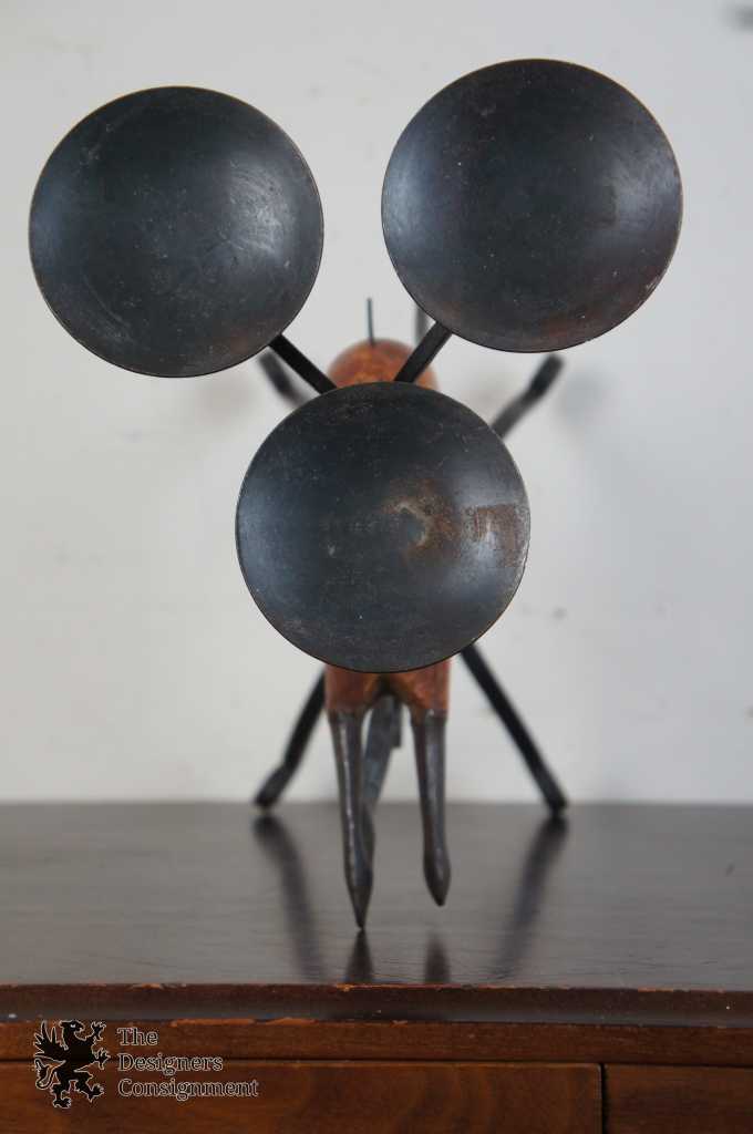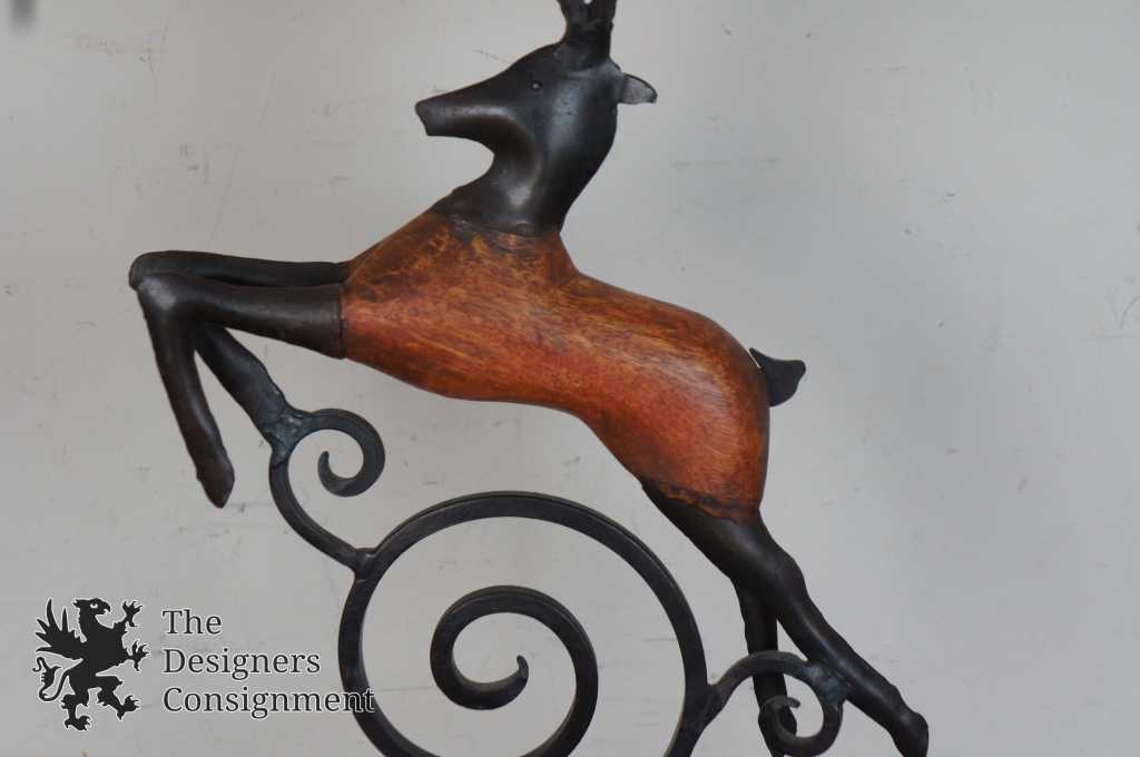 This stag candle holder is the perfect accent to any space. Made from wrought iron with a scrolled base, wooden center and metal body. The tiered stands neatly rest upon the deer's antlers.