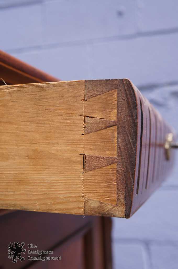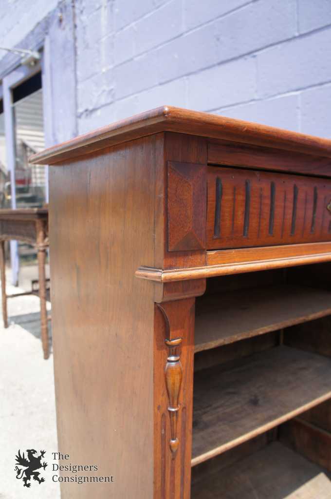 Intriguing Georgian style hall cabinet, circa 1890. Made from walnut with burled top and front door. Features downward finials and fluted columns along the front leading to bun feet. Opens to 2 shelves. Upper drawer is hand dovetailed. Includes Key.