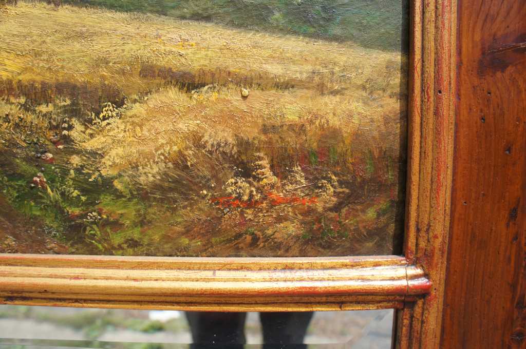 Oil features farm landscape scene