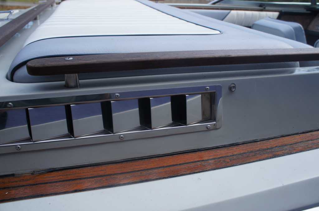 -repaired fiberglass for nicks and scratches to base, rubbed and polished gel coat at that time as well as conditioning to teak wood (approx. 5 years ago) - work done in Cincinnati
