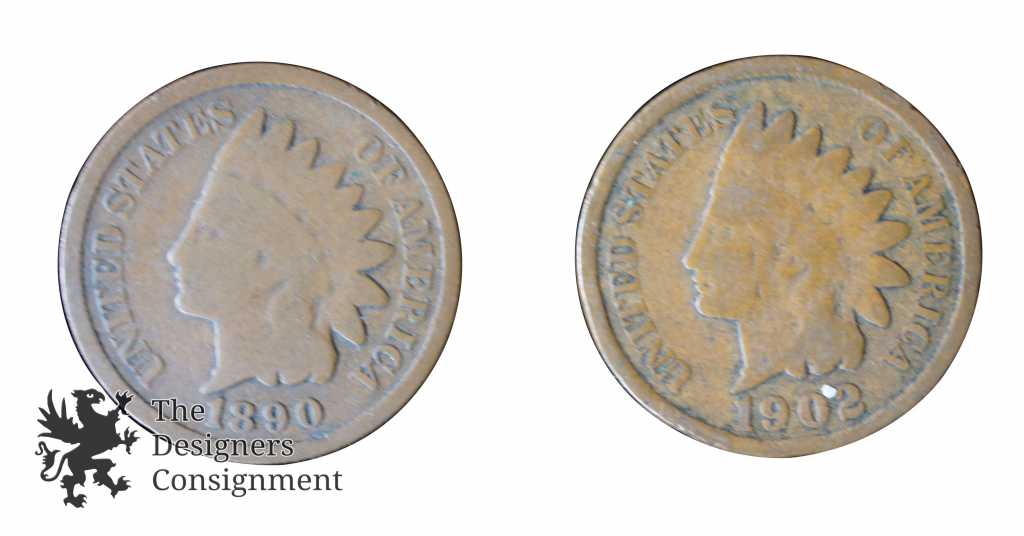 2 Indian Head Pennies 1890 1902 USA Currency Coins One Cent