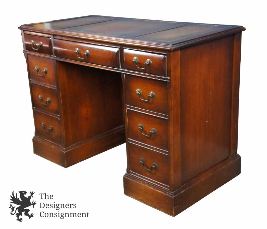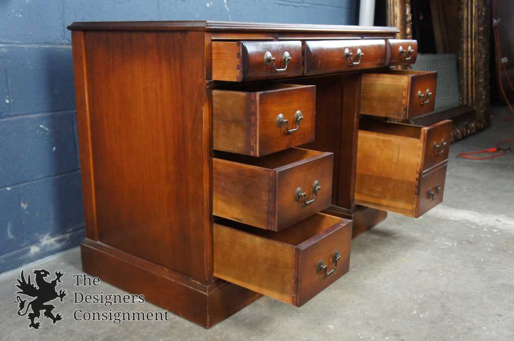Mahogany and leather top desk by the Rikes Company of Dayton, OH