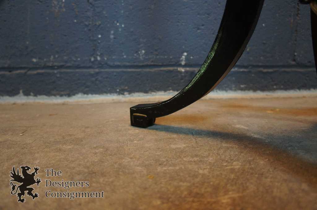 Biedermeier style floor lamp. Features a black tri-footed base, leading to a burled column center and swing arm light.