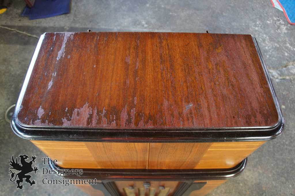 1936 Philco Radiobar Walnut Art Deco Cabinet Original Glass Dry Bar Barware