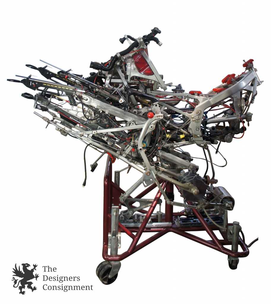 Part Motorcycle part Mad Max. A collaboration of Motorcycle frames, miscellaneous parts and weapons. Includes crossbows and lights.