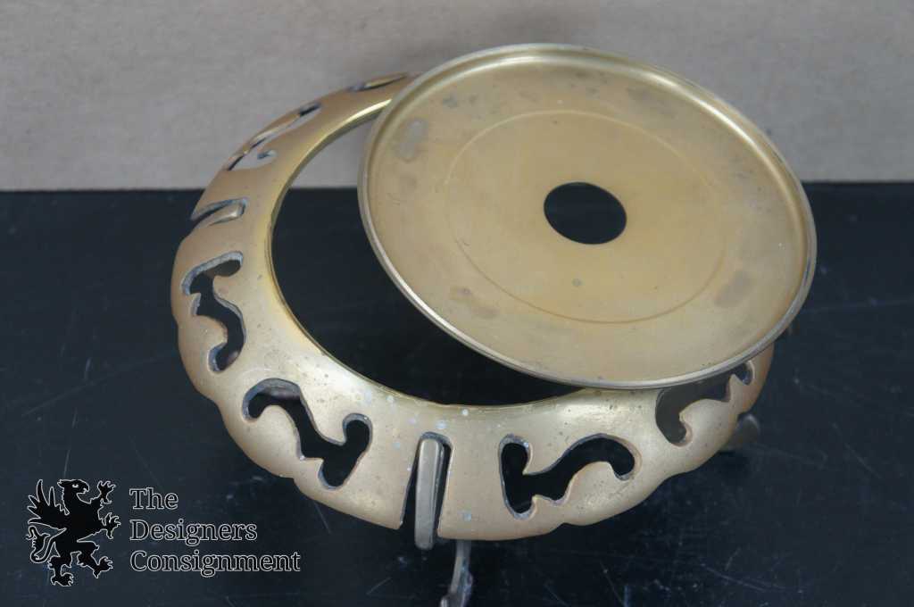Oriental Accent Floral Porcelain Lidded Ginger Jar & Ornate Brass Footed Stand