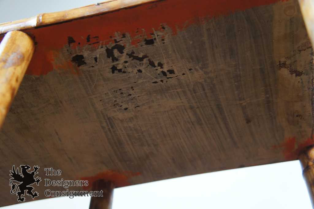 Very Good – Wear to leather from age; Missing 2 metal Medallions along the top of bamboo shoots.