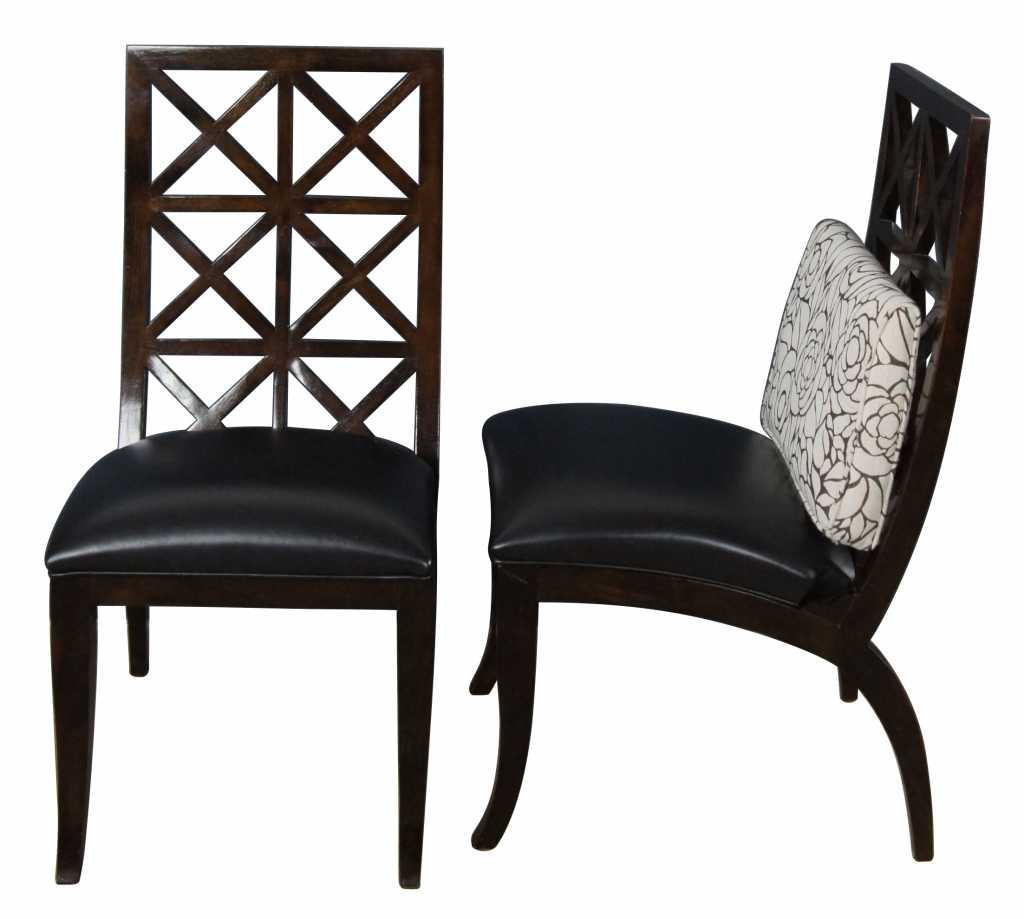 Made from Mahogany with a contoured lattice back and leather seat. Includes rose pattern cushions.