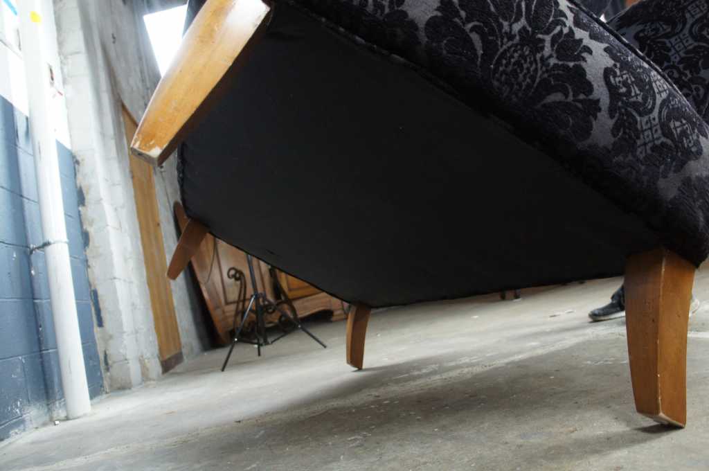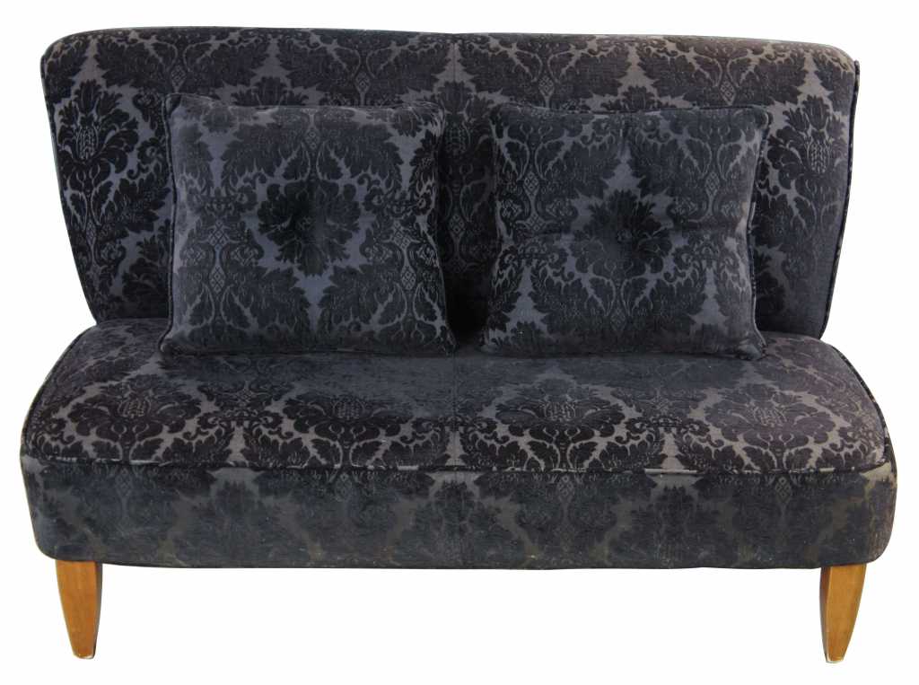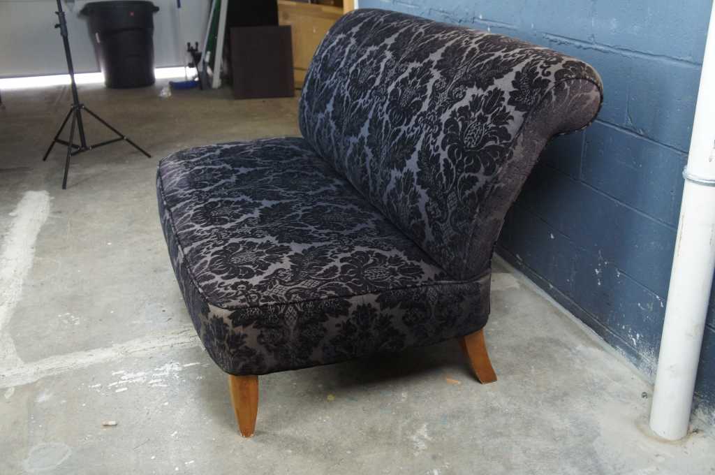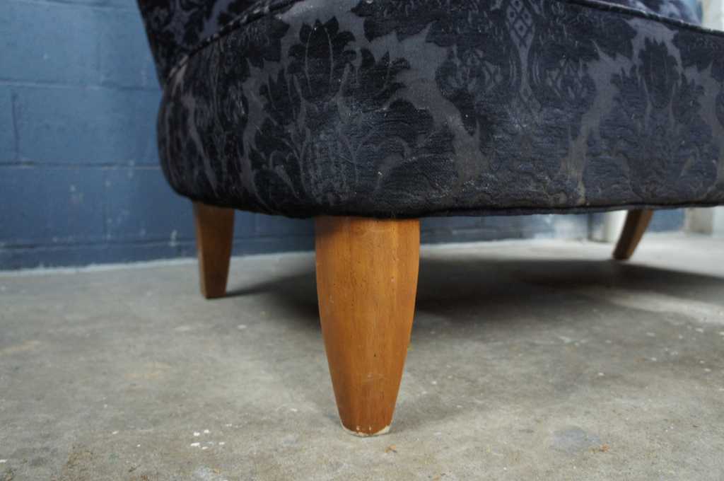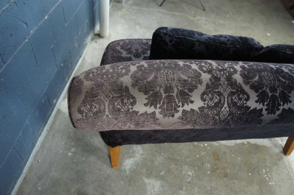 Beautifully upholstered in a flocked floral fabric. This settee was the signature model before the current Elkins Tufted Settee 44-1005