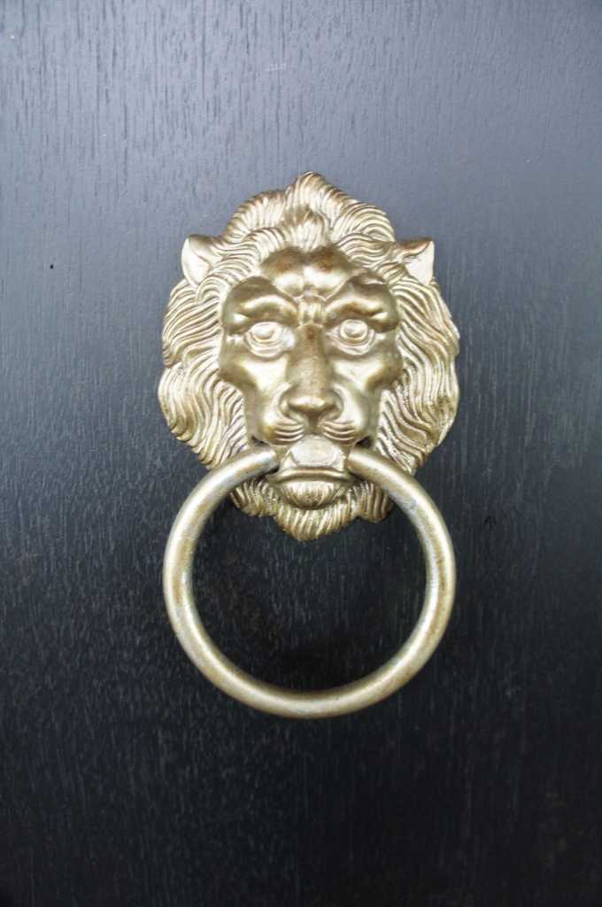 An absolute stunning cabinet by Century Furniture. With a black and gold French Empire inspired design, it sure to grab anyones attention. Suitable for a variety of uses. Includes 3 removable shelves along the top and double hinged doors allowing it to be used for media such as; television or other electronics. The base includes six drawers with a silver cloth lining along the top allowing for use as a china buffet. Features fluted columns, metal hardware and lion head knockers.