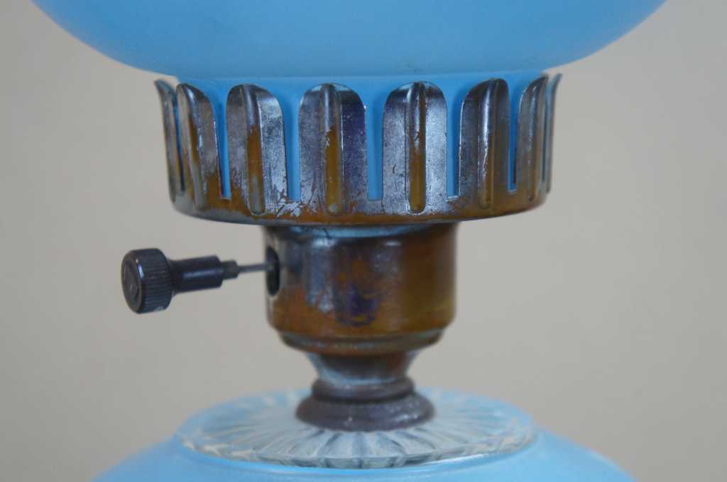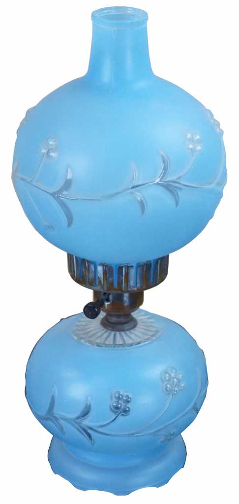 Vintage Blue Frosted Glass Gone with the Wind Lamp