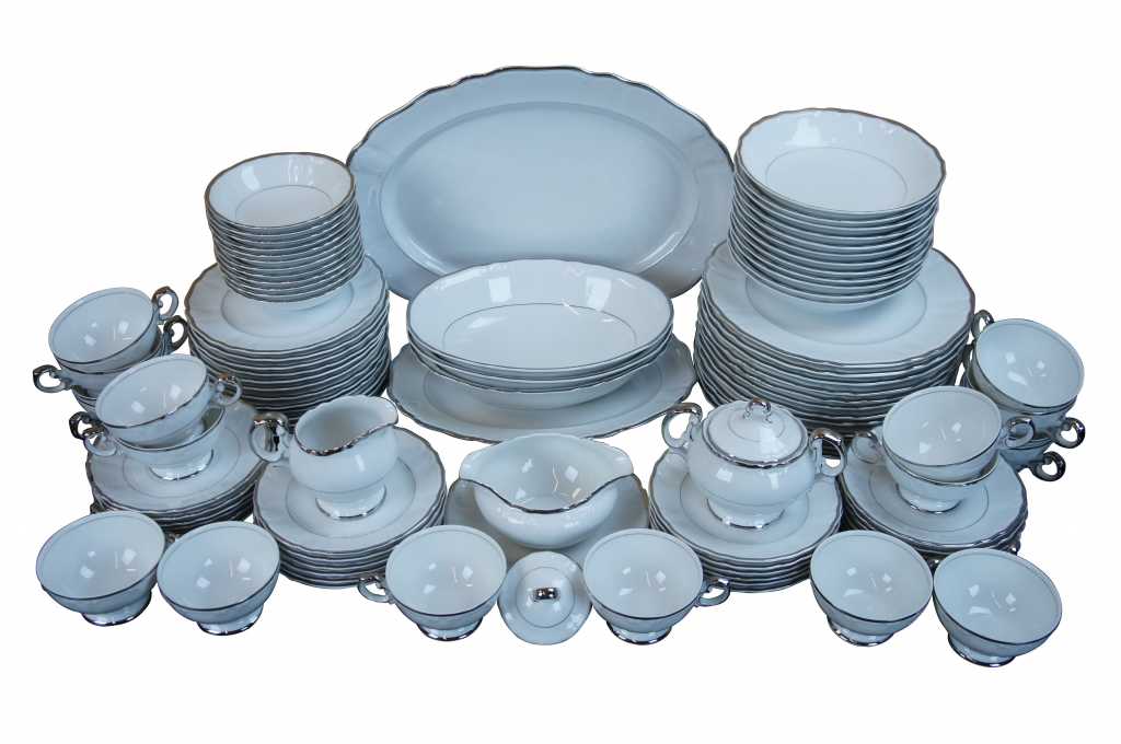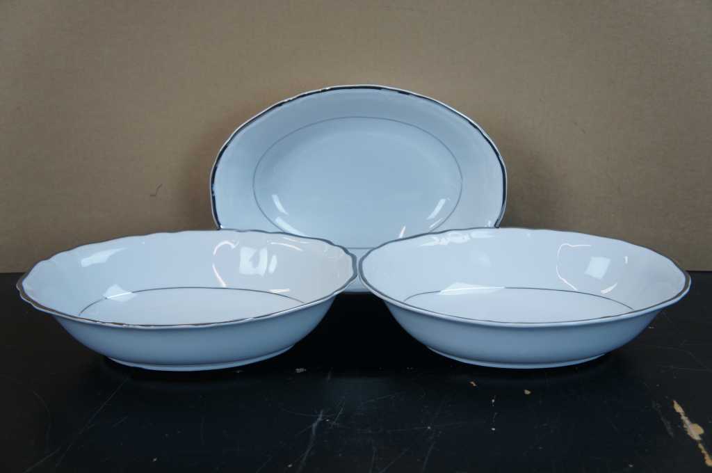 100 Pc Harmony House Silver Sonata China Set #3639 Japan Platnum Rim Service 12
