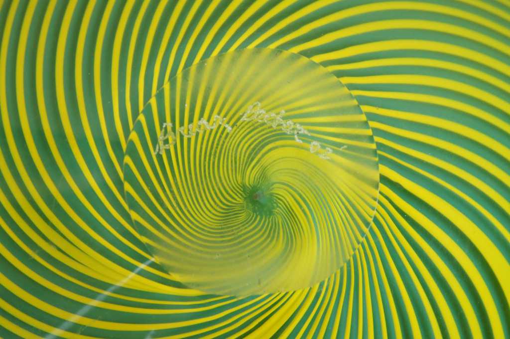 Hand blown freeform featuring green and yellow striping