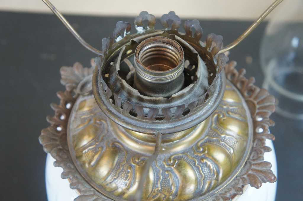 Antique Converted Electric Oil Lamp Parlor Lantern Floral Bird Gone w the Wind