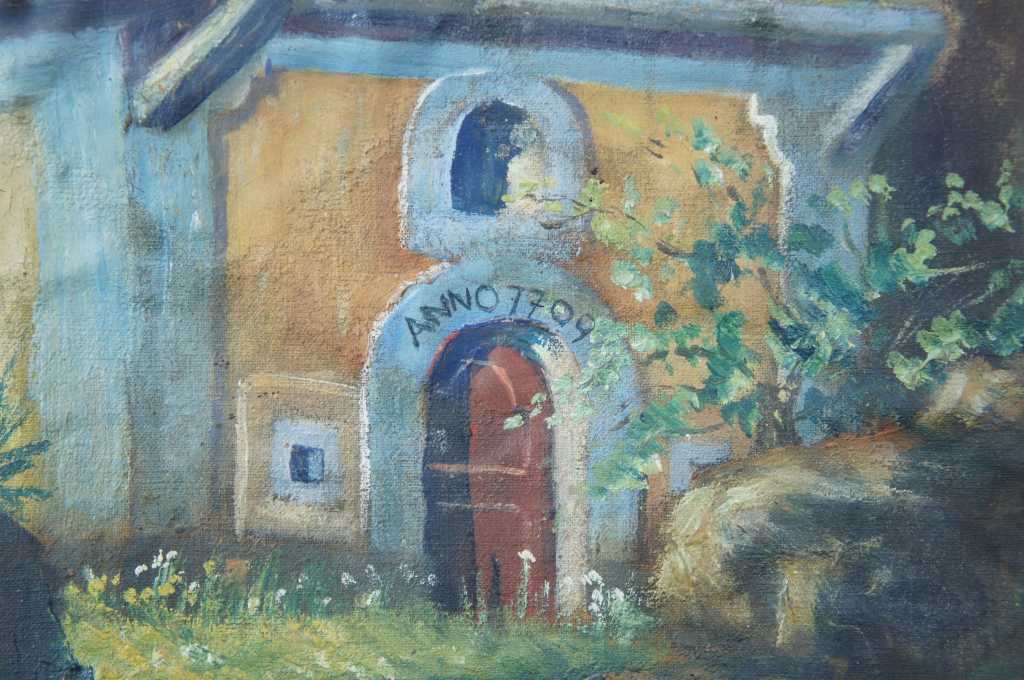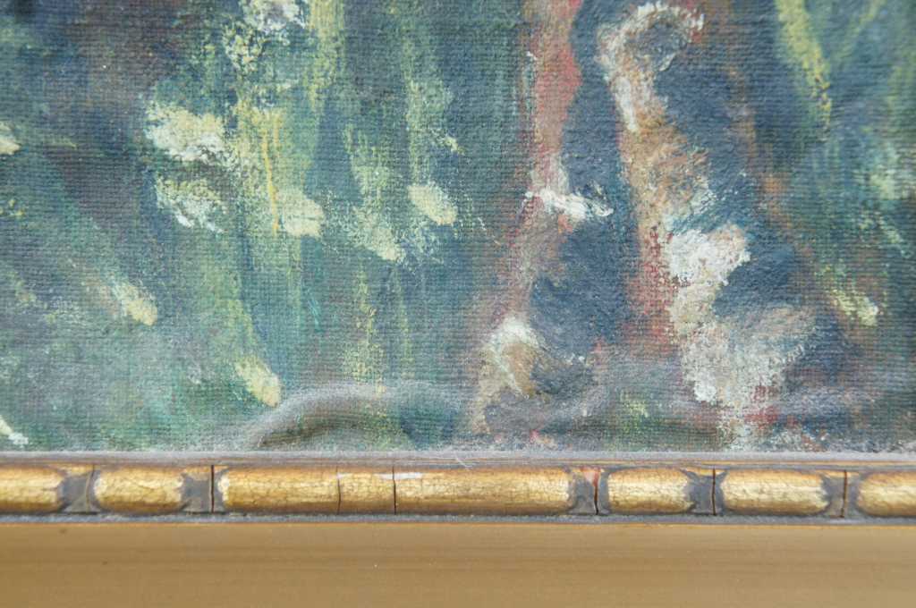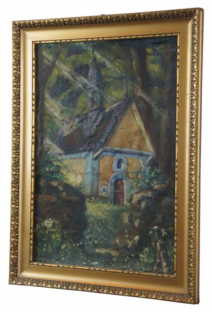 Antique Landscape Oil Painting Canvas on Board Church Forest Scene