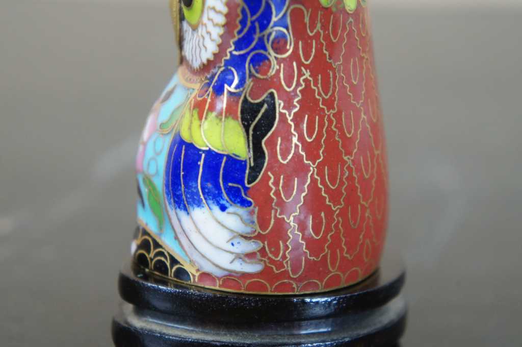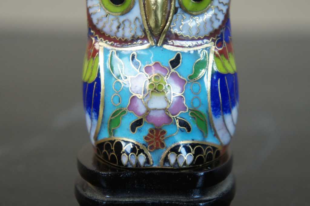 Vintage Chinese Cloisonne Enameled Miniature Owl Figurine